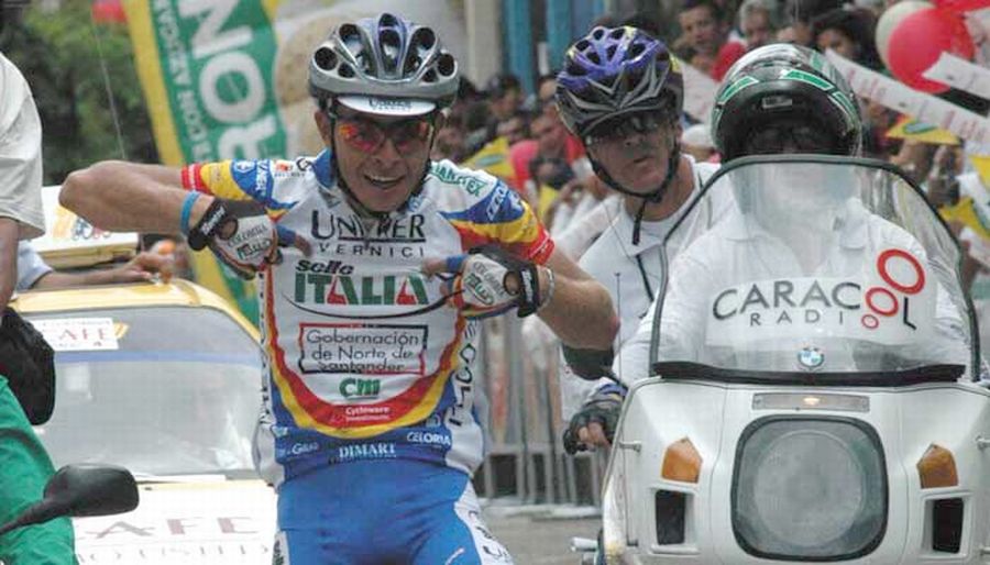 ![]() Reportero ciclista con casco y gafas el de Radio Caracol. |