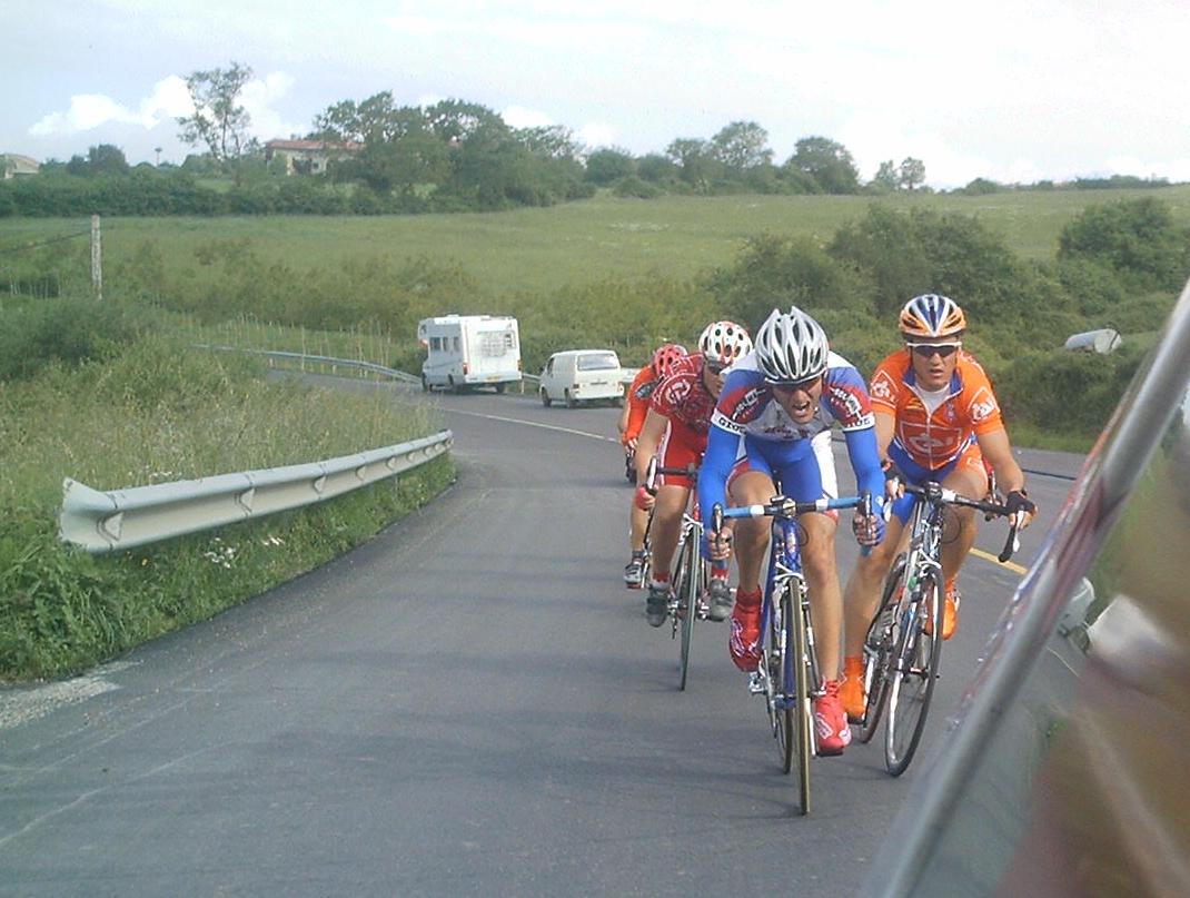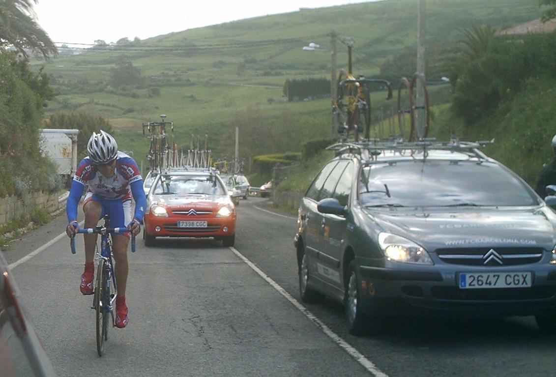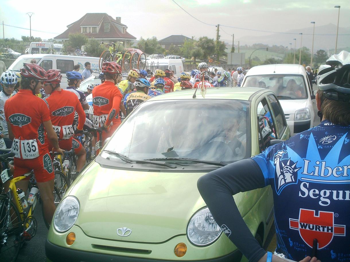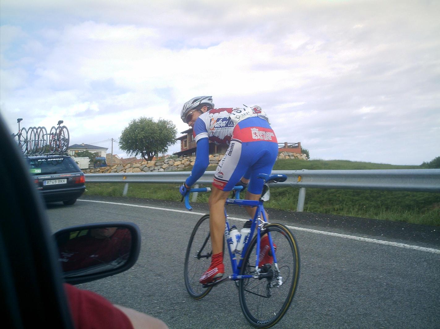 Entre tantas rotondas y cruces no habia manera de llegar alante, hasta que se llego a una subida donde ya pude arrancar un poco, me meti en un corte pero buff. como me llevaban, ajjj... el paquete enfiladisimo subiendo a una ostia detras... y el Redondo por delante con el Rojas y el Tomatero.. Ibamos a comenzar la subida a Ubiarco, una subidilla de na, 3 curvillas de nada, pero lo que dolia era como se subia, antes de empezar a subir pinché atras. Peor sitio para pinchar no podia haber, bajando para que te sacaran mas hueco y antes del puerto, asi que me toco sufrir como un hijoputa, grupetas quedandose y yo remando entre coches haciendo palancas y ostias pero ni con esas llegaba, bueno y dice un listo que en betanzos iba en la escapadda porque me agarre, vamos no me jodas, llevaba toda la puta carrera por delante y en un repecho cojo un bote un poco y ya dice que me agarro, fijo que es Redondo el que lo escribio pero bueno... que mas da, si me ha cogido mania el muchacho que le vamos a hacer.
