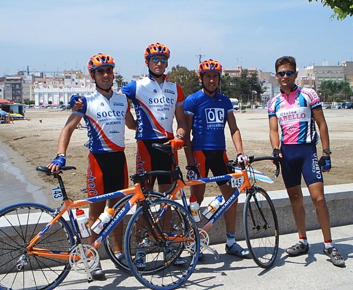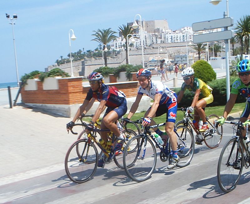 PRIMERA ETAPA CRE VINAROS-ERMITA MISERICORDIA AGGGGG, puta crono de mierda, venimos el mismo dia desde cordoba, pues pocas ganas de sufrir en una crono. Los siete cestos de pan que me comi entre el primer y segundo plato no me sentaron muy bien que digamos. SEGUNDA ETAPA PEÑISCOLA- ROSELL 160 KMS El Seat Altea muy bonito, por lo menos su parte posterior, que me aprendi de ir todo el dia viendolo, era el coche que abria carrera... Despues de sacar unas fotos en la neutralizada y estar unos kilometrillos mandando emails en la oficina arranqué y me fui con Oliver del CCM, ibamos los dos quemando gasofa a lo bobo persiguiendo a un grupo de 4 o 5 escapados, hasta que llegó un grupo de 20 tios por detras, soplaba mucho aire de costado de la playa y se habría cortado. Salimos de la zona de la playa y nos metimos en otra zona pestosa, alli arrancamos unos cuantos y conseguimos enganchar con el grupin de alante , venía Pablo Soler, que en un repecho empezó a engatillar el grupo hasta que se fue con 4 o 5 tios, yo me quedé por que a ese ritmo se me iba a salir el corazón. Y eso que regule mas que el dia anterior , solo me comi 2 cestos de pan... Después de ese repecho me cogió un grupillo de 20, la carrera venía totalmente rota, de ese grupo tiraban los Kelme. Estuvieron tirando hasta que pillaron el grupo de Pablo, entonces arranqué yo unas cuantas veces hasta que me fui con 2 Kelmes. Llegamos los 2 Kelmes y yo a principio de puerto, eran Tomas LLoret y William, iba yo escaqueandome un poco de los relevos hasta que me puse a tirar y tuve la mala suerte de que Wiliam se quedara, el otro Kelme dejó de tirar y entonces nos pilló el Mancha, que venía arrancando por detras para la montaña, detras también venía Pablo a toda ostia por la Montaña, pero no tuvo tiempo de pillar al Mancha. Ël puerto lo coronó en cabeza el Mancha ,luego Pablo y despues nuestro grupillo de unos 15 tios, que bajando pillaron a Pablo, entonces arranqué yo y pillé al Mancha con Lloret del Kelme. Ibamos los tres escapados, Mancha , el Kelme y yo, hasta que vinieron otros tres, Rafa, Estrada y un Artevi. Después de pasar una zona pestosa del pueblo del Sprint Especial, llegaron el Seco y el Sapo a toda ostia. Con la llegada del Seco y del Sapo la escapada se reactivó y el grupo de nueve tomó solidez y empezamos a sacar tiempo. Ibamos 4 kelmes ( Tomas Lloret, Sapo, Seco y Belda) 2 Soctec ( Estrada y Mancha) 2 Cabellos ( Rafa y yo) y un Artevi (Luciano). LLegamos a una zona pestosisima de repechos , donde se quedó Belda, yo iba pasando a toda ostia, Rafa iba a rueda, si llegaba se ponía cuarto y primer sub23. Dimos dos vueltas a un bucle hasta que encaramos la subida final, detrás venian tirando los Murcia para Totanero, venian a dos minutos. En la subida final el Seco apretó el ritmo, se marcó unas series a cuarentaytantos por hora, buenisimas para abrir hueco , hasta que iba yo pasando, arrancan 2 kelmes y un Soctec, yo me quede mirando para atras a ver quien salia a por ellos y veo que solo hay Soctec y Kelmes, también Rafa y el Artevi pero no estaban por la labor, asi que me toco tirar a muerte unos kilometros hasta que pillé a los tres, esa remada me eliminó, sabia que ya habia vendido la etapa, fue una putada correr con tanta gente del mismo equipo, fue como en las bulerias, me la jugaron como siempre. Total que cuando pillé volvieron a arrancar y yo ya no pude salir, el Seco, que iba con muchisima fuerza ganó la etapa. Rafa puso una marchetilla, al final arranqué yo para ver si soltaba al Sapo y al Estrada pero me ganaron en el Sprint, yo hice sexto y Rafa septimo. Pero Rafa se metía cuarto en la general y primer sub23, yo me metía quinto en la General, por que en la crono por equipos perdi 16 segundos con mi equipo, me reventó el Mauri... A Pablo Soler los jueces le hicieron una putada, cuando llegó a la zona del circuito que habia que dar dos veces iba con el grupo del Totanero, dio la vuelta y la segunda vez la dio con un Grefusa, que solo la dio una vez, los jueces trincaron al Grefusa y le expulsaron, pero como Pablo iba con el , pues le metieron al mismo saco, a veces vale mas ir solo que mal acompañado... Al dia siguiente se demostró con testigos que Pablo habia dado las dos vueltas, los jueces admitieron su error, todos menos uno, que dejo a Pablo sin poder correr la última etapa. TERCERA ETAPA VINAROS-VINAROS 140 KMS Yo no soy de los que van a rueda todo el dia por que tienen miedo a quedarse y perder su puestecito en la general. Me metí en un grupillo de 20 que se hizo de salida, y de ahi arrancamos, nos fuimos unos 10 tios, donde iba Mauri. En el primer puerto Mauri se puso a tirar como un loco hasta que se fue solo y gano la Montaña, era el Alto de Cervera, un pueblo de por alli. Lo jodido es que luego Mauri se quedó y yo me quedé solo en la escapada. A nuestro grupo llegó mas gente , llego el Edu de Soctec , llegó Lloret del Kelme , segundo de la general , que se ponía lider virtual, pero no pasaba por que tenía al Seco detrás con todo su equipo tirando. Yo si pasaba, me ponía segundo en la general, es asqueroso cuando hay 15 tios y ves que solo estamos pasando 3 o 4 , cuando ves que pasan 2 y te toca pasar a ti otra vez pues... Jode bastante , pero como estamos acostumbrados a remar, pues da igual... Otra a vez a verle el Culo al Seat Altea. Llevabamos ya 45 kms escapados cuando llegamos al puerto de segunda , que era un puerto serio, detrás veiamos al pelotón, que desgraciadamente no venia lejos. En el puerto empezó a arrancar gente de la escapada, arrancó el Puma del Sodexho y me fui a por el. Nos fuimos 3 tios , Edu el Puma y yo. Yo me puse a marcar el ritmo, Edu decia que aflojara , que el puerto era larguisimo, pero la cosa no estaba para aflojar, el pelotón no venía lejos y habia que intentar coronar delante. Asi que iba tirando yo a medio puerto cuando veo una bala blanca que me pasa a toda Ostia, era el Totano, el mítico Totanero en acción, y