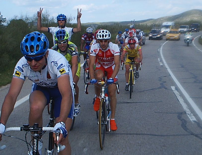 PRIMERA ETAPA: HUMANES DE MADRID-HUMANES DE MADRID 160 KMS (170 PARA LA GRUPETA DE DIMITRI) En el km 4 se hizo un corte , por detras en el pelotón iban a ostias pero no se iba nadie, yo lo intente taitantas veces pero mas de 200 metros no sacaba, estaba asqueado de lo rápido que se iba. Se pasó el puerto de tercera con lluvia y se llegó a la Granjilla, que era de segunda, iba yo a medio puerto cuando pinché, a la ostia que se iba y con lo que tardo en cambiarme rueda el del coche neutro lo tenía complicado para enganchar, total que acabe en la última grupeta. El primero en coronar la Granjilla fue David Rodriguez de Macario, que se puso lider de la montaña. Ibamos 4 o 5 remando a 40 por hora como podiamos y veiamos como nos pasaban otros ciclistas a 70, menuda impotencia, alli nos quedabamos nosotros, los mas tontos de todo el pakete...Se agarraba todo el mundo, a las motos de los civiles , a las furgonas , te pasaban a 70 con el impulso y se volvían a agarrar. El Pelotón se habia partido en dos cachos en el puerto, la cabeza , con 47 corredores y el segundo grupo. Detras ibamos nosotros, los remadores. Al segundo grupo lo confundieron de carretera y se hicieron 10 kms mas, Despues del error , Dimitri, gran conocedor de las carreteras madrileñas fue el que guió al grupo por la ruta correcta, si no no llegan!!!!!! El caso es que nuestra Grupeta -donde iba la Jet Set de la Vuelta...- llegó antes que el grupo de Dimitri, donde iban unos 50. Delante llegarón al Sprint donde ganó Del Nero. SEGUNDA ETAPA: CRI CASA DE CAMPO Las cronos no me gustan, el que se las inventó se podia haber quedado dormido ese día... Ganó Gustavo Toledo del Telco Jar. TERCERA ETAPA: CERCEDILLA-NAVACERRADA 156 KMS Esta si que era la etapa wapa. Saliendo de Cercedilla había un puertecillo de 3 kms, a poco de coronar arranqué y me metí en la fuga buena del día. Ibamos 9 tios, Arenas y Alexis de Cropusa, Atila y yo de Macario, Del Nero de CCM, el Mítico Alfon, un francés del Haribo, un Salamanca Patrimonio que pasaba poco y un Telcom que no pasaba. En Cerceda llevabamos 35 segundos, pero cuando llegamos al Pantano teniamos ya 2 minutos. Ibamos a tope a tope y todo funcionaba bien. Pero llegaron los repechos y Alexis empezó a pegar tirones, nos estaba reventando pero la ventaja seguía aumentando, llegamos a Miraflores de la Sierra con 2 minutos y medio de ventaja, al pie de la Morcuera. Subiendo la Morcuera yo preferí coger mi ritmo y no cebarme con Alexis , que iba 20 puntos mas que yo, acabamos subiendo juntos Atila y yo , ibamos sufriendo a tope para que no nos pillara el pelotón antes de coronar la Morcuera, pero a kilometro y medio nos engancharon, metido en el pelotón se iba haciendo la mitad de esfuerzo que escapado, pero yo iba ya muy jodido y tuve que hechar muchas babas para coronar con el pakete. Los periodicos en la Morcuera no hicieron falta, por que a la ostia que bajamos nos plantamos abajo muy rápido y no hubo tiempo de enfriarse... En las rectas entre Rascafria y Lozoya los escapados que nos habian soltado estaban aumentando la diferencia, increible como tenían que ir Alexis y Arenas. Canencia es tendido , pero a 1 km de coronar se pone duro , me kede ahí aunque enganché bajando facilmente pero el esfuerzo de ir escapado hasta Morcuera lo iba a pagar toda la etapa... Los llanos entre Miraflores y COllado Mediano se hizieron agonicos, ibamos a 60 encunetados, alli encunetaba todo el mundo... El unico equipo que no encuneta ya sabemos que es el Cabello en la carrera del Viso cuando tiraban a por mi... Pero aqui en la Vuelta Madrid se iba tres veces mas rápido que en cualquier romeria de Andalucia, todos eran Galácticos y eso se notaba , no hubo ningún parón en toda la Vuelta. Llegamos a las estribaciones de Navacerrada y subiendo Cercedilla yo pegue una explosión enorme... Iba vacio y menudo Seto hice. Me kedé con Atila, que también pago el esfuerzo de la escapada, lo que no nos explicabamos era como Alexis y Arenas podían seguir todavia escapados. Ibamos subiendo Navacerrada como podiamos cuando la carretera se trasnformó en el circuito de Jerez . Empezaron a llegar motos con ciclistas enganchados subiendo a 60 por hora Navacerrada, se empezó a enganchar todo el mundo y alli me quedé yo solo... Veia a la gente que me seguía pasando a 60 por hora y ya no sabia donde mirar, no queria verles, el unico que subia con sus cojones alli era un Tyler Hamilton que subía con su coche al lado. YO iba retorciendome a 11-12 por hora ,llevaba una tostada increible, hacia que no petaba igual desde el Golobar el año pasado en Castilla-León (En Vuelta Palencia lo subí como un campeón ,jiijj) El del coche del Tyler Hamilton me dio sales y empezé a recuperarme. Poco a poco me empezó a entrar el Gas y ya podia mantener 14 por hora!!!!!! Navacerrada no es nada duro ,pero si vas jodido cualquier cosa es dura. Pasé por la fuente de los Geologos y vi a 10 Civiles parados por el juez, habian trincado a algunos enganchandose y les estaban dando la bulla. Por fin se acabó la agonía y llegue a meta detras de un León que me había pasado a medio puerto cuando estaba yo en plena petada. Ganó el Totanero, cuando pasas tanta miseria los que ganan en esos sitios te parecen Dioses, gente que anda muchisimo. Aunque también si estas alante vas mas motivado y sufres mas que si vas kedao, por eso caen las minutadas. Me consta que hubo gente que subió Navacerrada mas deprisa que el Totanero, los que se agarraron a las motos de los Civiles en Cercedilla y les soltaron a 2 kms de meta. Por lo menos 30 tios, Dimitri iba penando para hacer el 30 a 5 minutos del primero y todavia le pasaban los motorizados!!!!! Pero lo jodido es que se agarran 40 y solo hechan a 4 tios, dos de ellos del Macario. Atila y Patrick fueron expulsados de la carrera. ( Empezaron Navacerrada conmigo y me metieron 7 minutos arriba... pero como ellos 20 mas) Luego llegó una Grupeta de 60 tios, de ellos subieron la mit