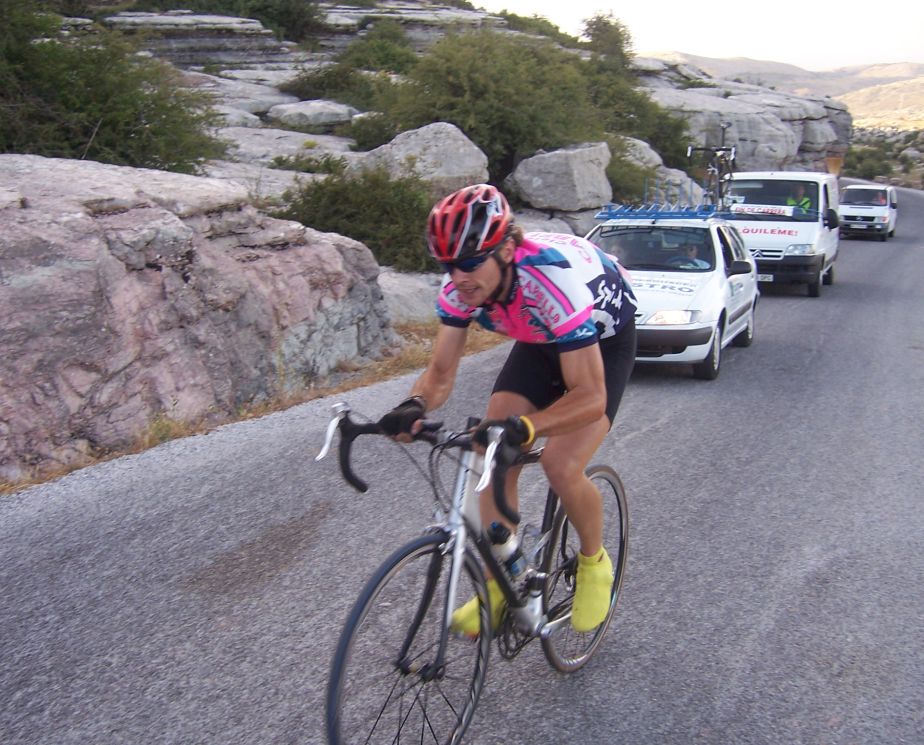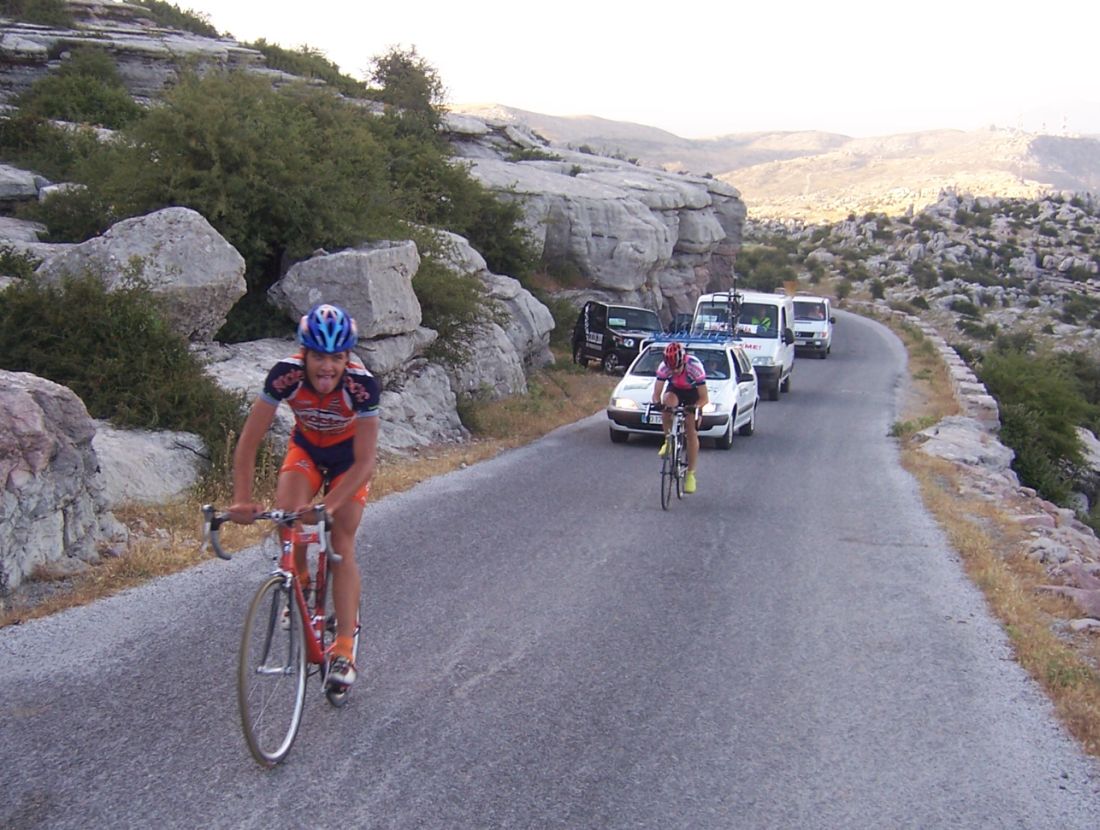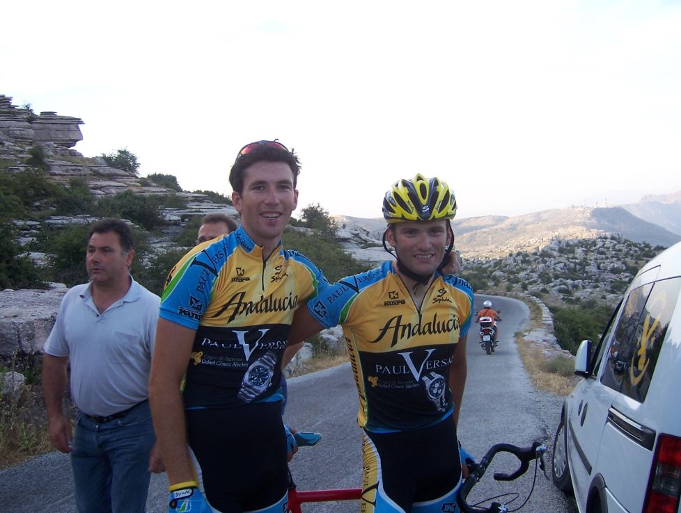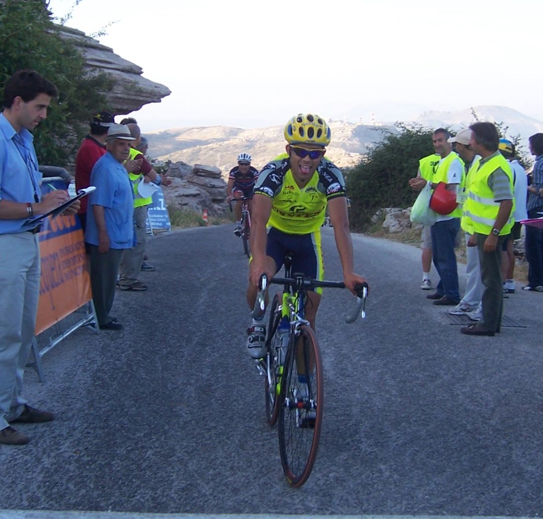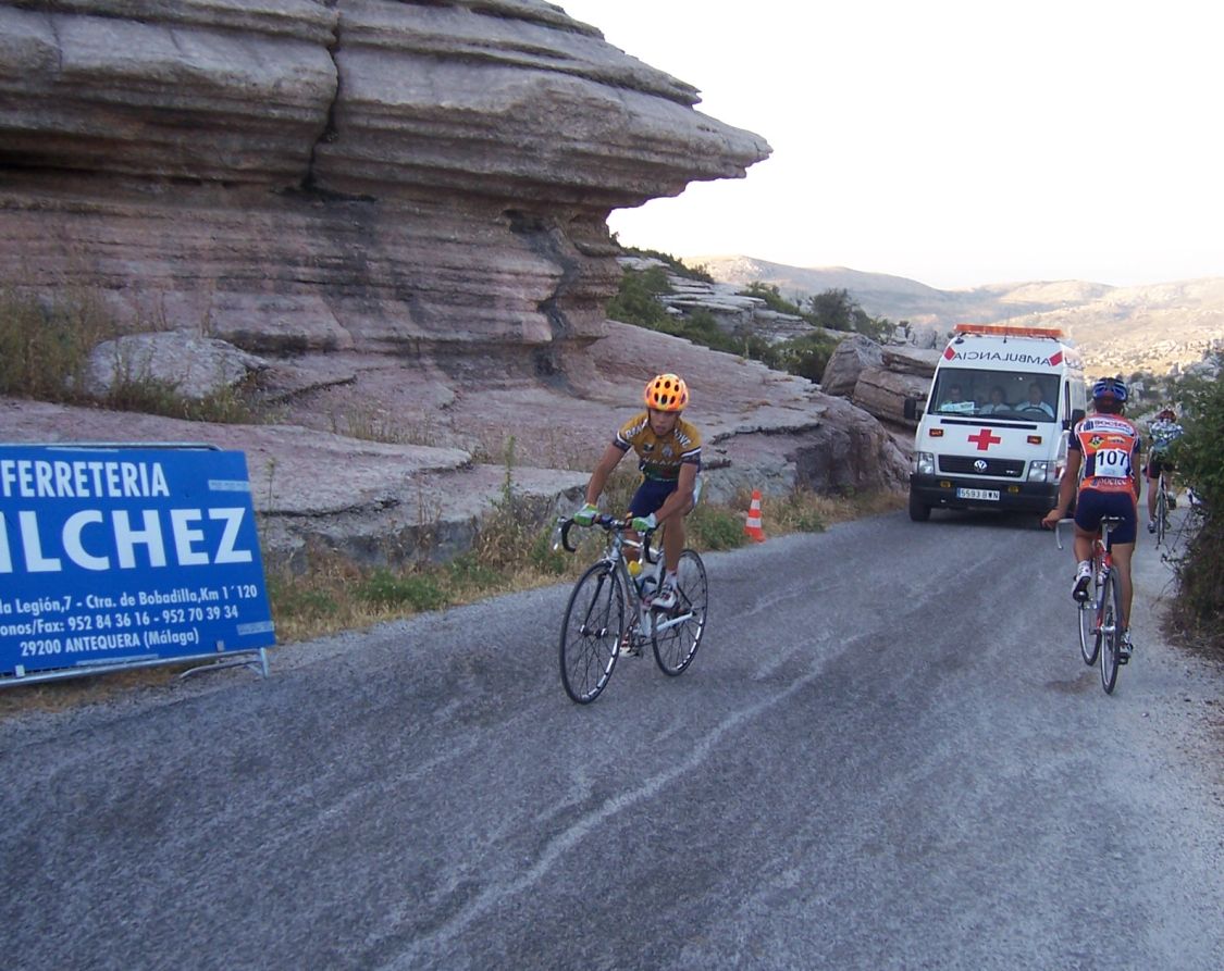 La subida al Torcal es una de las bulerias mas duras de Andalucia, 100 kms de puertecillos y repechos y la tremenda ascensión final de 16 kms al Torcal, con rampas tipo Golobar. Se hizo un corte de salida, Isra Perez, ganador del Mariano Rojas ya se puso nervioso cuando lo vio y arrancó a por el corte, yo soldado a su rueda, me llevo al corte, todo esto en el primer km, fue una salida rapidisima. Por detrás engancharon y comenzó la guerra de ataques entre los Soctec, Avila Rojas, Andalucia y el Isra que salía a por todo. En el primer repecho duro arrancó Padilla con fuerza y se marchó en solitario, se lió a cabalgar el Padilla como le gusta a el, atras seguiamos con ataques, se paraba, se arrancaba, al ritmo de bulerias, le dije al Isra.. -buff, al Padilla como le dejen, llega hasta el Torcal.. Isra decia- Si, si, como nos paremos aqui ya veras... Llegamos al primer puerto, que ya es serio, tiene un par de curvas mas de la cuenta que hacen daño, alli tensaron el Montenegro, el Pastor, Isra.. Cariñena.. y se marcharon para alante, por detrás iba un grupillo con Cecilio y detras el pelotón donde iba yo, arranque yo con el plato y pillé al grupo Cecilio coronando el puerto pero muy vacio, vi que habia un repecho mas y me entró un ataque de esos de asfixia que me entran a primeros de carrera y me soltaron. Después del descenso se unieron los dos grupos y quedaba por delante la escapada donde iba Cariñena. Nosotros estuvimos tirando un poco hasta que nos pusimos a ostias, nos fuimos unos cuantos, nos perseguian, nos enganchaban... al final nos fuimos Cecilio y yo solos y nos fuimos acercando al grupo donde iba Cariñena, hasta que entramos y nos pusimos a tirar del grupo, alli iban el Fleki, Javi Chacón, Padilla y Cariñena. Por delante iban Montenegro, Isra Perez, Pastor y Saul Luna, que se habia escapado para ganar la Meta Volante del pueblo de su novia, Archidona, y bien que la ganó. Ibamos Cecilio y yo tirando hasta que Cecilio se cansó y empezó a arrancar, por que no ibamos a llevar a los demas a rueda y que llegasemos al Torcal y nos dejasen sentados, salió el Fleki a por el, cogieron metros, el Chacon se puso a arrancar a por ellos, nos volvimos a juntar, arranqué yo, me cogieron... una sucesión de ostias que dió como resultado al Fleki y a mi por delante. Asi pues, el Fleki y yo nos pusimos a abrir camino mientras los demas se miraban. Ibamos rápido el Fleki y yo, abrimos hueco rápidamente y llegamos a Antequera, lugar donde se iniciaba la subida al Torcal. Yo ahi me encontraba muy bien, empezé subiendo muy rápido las primeras rampas hasta que vimos al fondo la cabeza de carrera, entonces ya me pusé a subir rápido rápido, fue una remontada que nadie se esperaba, nadie se esperaba ver venir a Diegoweb, que lo habian dejado en el primer puerto, pero fue una remontada de estas míticas, yo cuando peor lo pasé fue al principio de carrera, que iba asfixiado, luego ya iba como un avión, conseguí empalmar con el Isra, Pastor y Montenegro, iba Saul Luna por delante pero el pobre iba haciendo eses, iba pagando su esfuerzo en esas rampas. Fleki y yo habiamos tirado a medias hasta que ya vió que teniamos cerca al grupo del Pastor y ya no pasaba casi. Cuando cogimos al Saul el Fleki tiró de clase y soltó una ostia que se marchó solo, yo pensé que ya ganaba la carrera pero el Torcal es muy largo y muy duro, yo iba ahi ya sufriendo a rueda de Montenegro Pastor y el Isra, Saul fue cogerle y quedarse, las rampas ya eran durisimas, yo ya no iba como un avion, habia pagado ya el esfuerzo de la emocionada de enganchar y estos estaban mas frescos que yo. El Montenegro empezó a ponerse nervioso y a pegar tirones, en una curva un tirón del Montenegro me dejó tocado y en la siguiente curva ya me solté iniciando la peregrinación en solitario hasta la cima del Torcal, quedaba lo mas duro, el tramo de la carretera mala. Pero antes de la carretera mala todavia quedaban unos rampones con curva de herradura durisimos, alli ya fui cogiendo el ritmillo bueno para que no me engancharan por detrás, pero miré para atras y lo unico que veia a lo lejos era a Saul que iba mas despacio. Llegué al cruce donde empieza la carretera mala y lo duro, y alli hay una rectita similar a la del Golobar, donde el 23 se me quedaba pequeño, alli iba yo subiendo como podia, viendo lo que me iba sacando el grupillo de Montenegro, se hizo durisimo, los kilometros larguisimos, pero al final por fin llegué a la meta quinto, arriba hacia hasta frio de lo alto que habiamos subido... No se como será el Alto del Chivo del Circuito Montañes pero el Torcal es muy duro. Ganó Montenegro, segundo Isra, tercero Pastor y cuarto Fleki. Detras de mi los que venian, iban tan lejos que ni me veian, si lo se no sufro tanto.. era el grupo de Javi Chacón, almeriense del 3 Molinos, Padilla del Soctec y Cariñena, que tuvo que correr con otra bici por que la suya se extravió en el avión. CLASIFICACIONES SUBIDA TORCAL DE ANTEQUERA. 1º JORGE MONTENEGRO SOCTEC 2º ISRAEL PEREZ CCM 3º PASTOR AVILA ROJAS 4º FLEKI AVILA ROJAS 5º DIEGOWEB APV 6º JAVI CHACÓN 3MOLINOS 7º PADILLA SOCTEC 8º CARIÑENA APV 9º SAUL LUNA SOCTEC 10º CECILIO APV 11º PICHEJA SOCTEC 12º JOSE CHURRIANA 13º RICARDO CORREA SOCTEC 14º JORGE SANCHEZ ENYPESA 15º DANI DOMINGUEZ AVILA ROJAS |