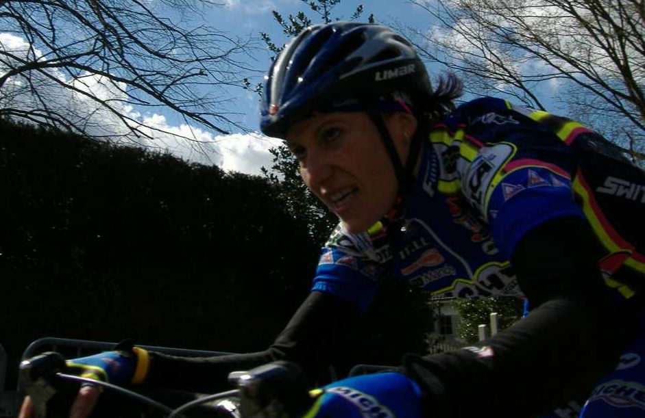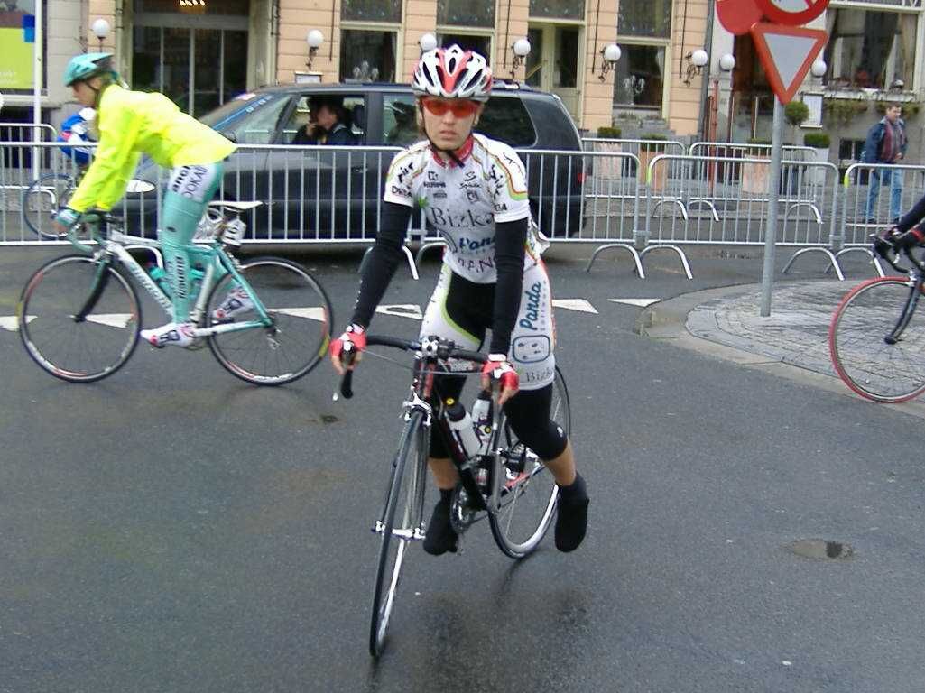 Una ciclista del Bikaia Panda preparandose para salir.