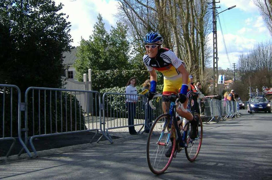 Una alemana remando en la subida.