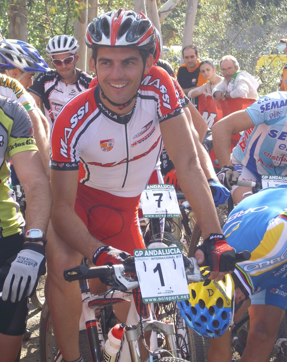 Salí en Pole Position, tenía ganas de por lo menos dar el saque de honor, pero aqui en MTB el que da el saque de honor casi es el que gana la carrera, eso no lo sabía yo. Empieza el arbitro a decir, 2 minutos, 1 minuto... 15 segundos... yo flipando.. Pero esto que es, una crono o que?? tanta agonía me estaban poniendo nervioso y todo, cuando dijo salida... alli arrancaron todos esprintando a bloque con el plato grande, estan locos!!