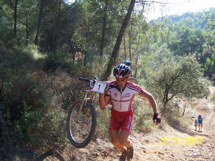 La primera vez que compito en una carrera MTB, Trujillo me dejó la bici, la probé la misma mañana de la carrera, hacía siglos que no tocaba yo una bici de montaña, y me apunté a correr con los Kapos, una auténtica temeridad, puesto que el recorrido era durisimo, no apto para carreteros, de muchisima técnica tanto en subidas como bajadas.