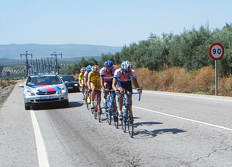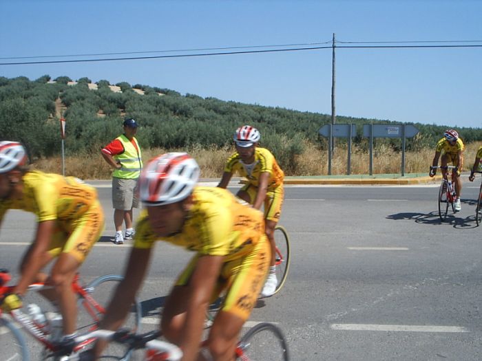Iba yo en la oficina de salida, viendo los ataques que parecia que iban a ser bobos sin futuro, pero de repente se van 15 tios y yo que seguia en la oficina , era el km 2, demasiado pronto... aunque yo en Torredonjimeno la lie antes.. El caso es que si salimos 56 tios y se habian ido 15, la mitad de Avila Rojas, la cosa se ponia fea, aunque aun quedaban muchos gallos en el pakete, MArranete, Arenas...