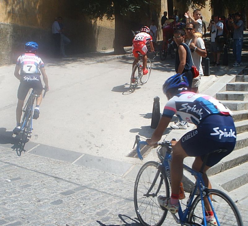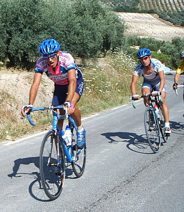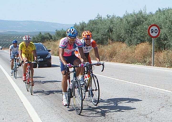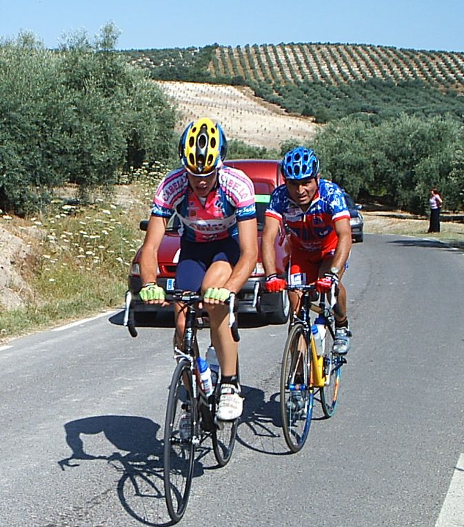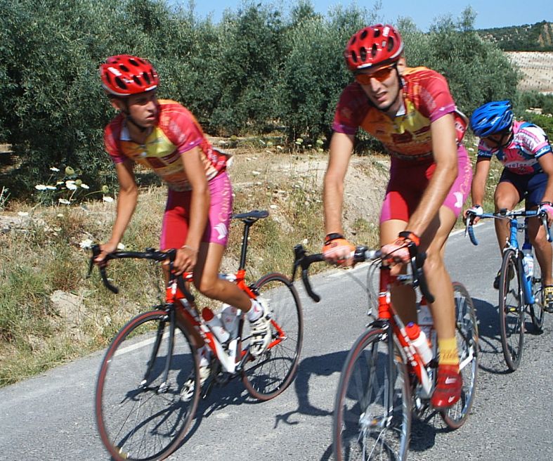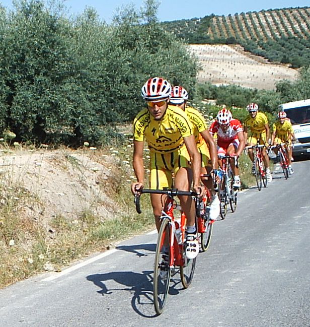 Pero Marranete se piro y yo seguia en el pakete hasta que arranqué en el puerto, nos fuimos un grupito con varios Avilas, Arenas , Dani Valle del Soctec, Chacon del Murcia y yo. Los Avilas iban a rueda y nosotros tirando para pillar la escapada, pero poco antes de pillar empezo el puerto, Arenas metio gas y se fue, yo anduve persiguiendo con el Murcia y el Soctec hasta que enganche el grupo del Arenas , donde iban Pablo Soler, Tintin, JOse David, alli me dijeron que iban 9 tios delante, 8 Avilas y el Curro.