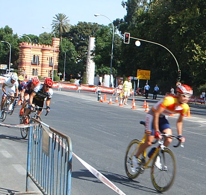 Se preparaba el Sprint final, lo único interesante de esta carrera, en la última vuelta iba yo tan comodo colocado de los 5 primeros, a los 3 les pillaron en la última curva, poco antes de la dicha curva se metio mucha gente y perdi puestos ,pero todavia iba entre los 10 primeros, aunque quise recuperarlos arriesgando en la curva tomandola por fuera a toda velocidad, poder meter el 11 antes que los demas y esprintar en condiciones. Iba yo tomando la curva a toda ostia, viendo el hueco que tenia para meterme para esprintar cuando NOOOOOOOOOOOOOOOO!!!!!!!!!!!AHHHHHHHH!!!!!! En la herida no!!!!!! Otra vez no!!!!! Ahhhhhhhhhh!!!!!!! Pegue una ostia lateral justo en el lado de las heridas de la caida. La herida me dolia con que me soplaran, asi que os podeis imaginar la agonia que pase en esa caida... La caida no fue gran cosa, tipica caida por tumbar a lo Crivillé, se me fue la rueda de atrás, vas tumbando y en milesimas de segundo estas en el suelo todo tirado. Creo que no fue casualidad que me cayera esta vez, ya de por si iba con la mano jodida y como no podia agarrar la bici en condiciones pues imagino que perdi el control aunque tampoco estoy seguro de que fuera por eso, veia que cuando mas tumbabas mejor ibas despues de la curva y como era la última ... pues arriesgue demasiado para hacer de los 10 primeros y se jodio todo.