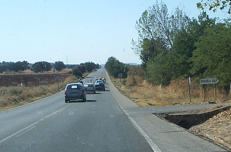 Llegamos a la subida de Caracuel, yo entré rapido para que los que fueran conmigo sufrieran y se quedaran. A media subida al paso por el pueblo se tranquilizó un poco la cosa pero al final di un relevo largo progresivo. Empezé a 29 km/h 33, 35 ,40 y coroné la subida a 43 por hora mirando para atras a ver cuantos aguantaban. Solo aguantaba un sub23-Madrileño, bajando ya no tenia gas, menos mal que estaba el chabal que me paso relevo.