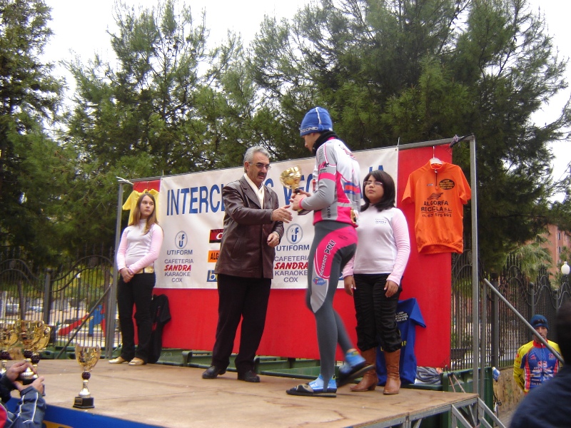 Juan Pedro Saez subiendo al podio en el Trofeo Interclubs de la Vega baja de Alicante con los calcetines Diegoweb.
