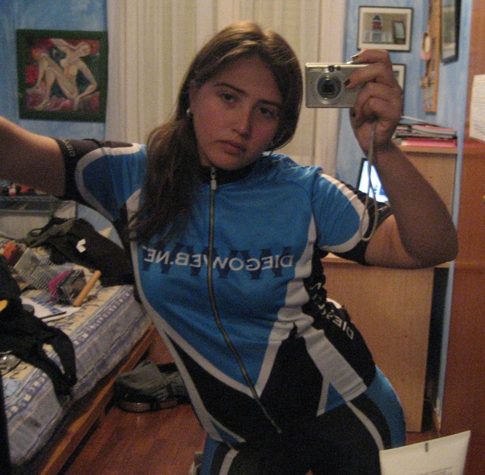 Giorgina con su equipación Diegoweb.net autoretratandose en el espejo.