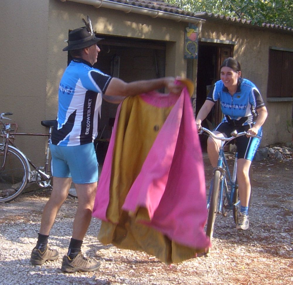 Korilla con los calcetines Diegoweb, le quedan muy bien a juego con su ropa del bicisprint.