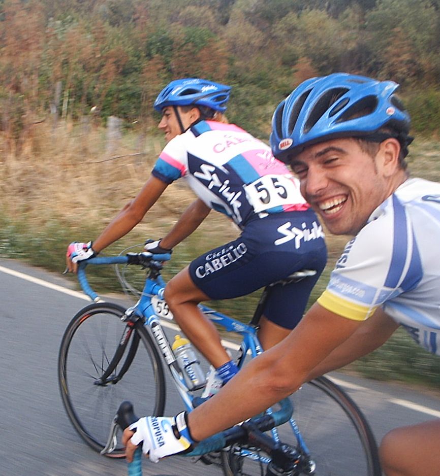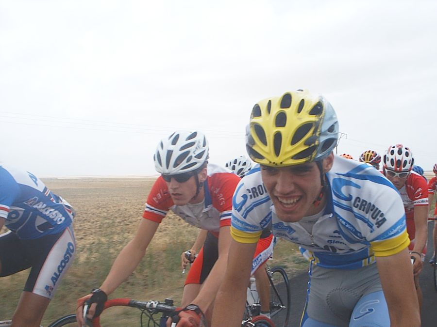 Uff como se salió, alli encunetados, atacando todo el mundo a mil por hora por carreteras malas, en unos repechos se empezó a cortar el pelotón de tantos ataques que había ,yo arranqué para meterme en el corte de delante y de alli volvi a arrancar hasta quenos fuimos un grupo de 10 tios, donde ibamos Dani Casado, Pablo Soler y yo. Nos pusimos los tres a tirar, pero el pakete llego por detras y nos pillaron, entonces volvi a arrancar, me fui solo en un repeecho largo que habia, pero coronando el repecho me volvieron a pillar y arrancó Pablo diciendome que me fuera con el, saltó Rivas a por Pablo y yo detrás de Rivas, como la gente iba cascada no hubo reacción y nos fuimos. Tambien se vino Angel Vallejo, del Alcosto.