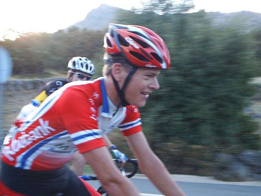 Pobres Alcostos, les llovian ostias por todos los lados, pero Almagro, Padilla, Alberdi y compañia se defendian como gato panza arriba, en la primera hora de carrera con aire de cara y un puerto de tercera, teniamos 49 de media, eso era la ostia. Yo fui de los muchos que ataco taitantas veces pero sin fortuna. El corte bueno se hizo en el puerto de tercera, se marcharon 8 tios. Yo arranque cuando ya se habian ido, cuando el tren ya habia salido, ataque yo solo y abri un hueco de minuto y medio, que iendo solo se dice rapido. Eso supone gastar 20 cartuchos, intentaba cojer a los de alante pero eso es algo que solo esta al alcance de gente como Romes, Joakin Soler o Malaguetas y mas cuando uno de los que iba alante era el propio Joakin Soler. Alante iba PAblo soler, que se quejaba de que los demas no le pasaban.