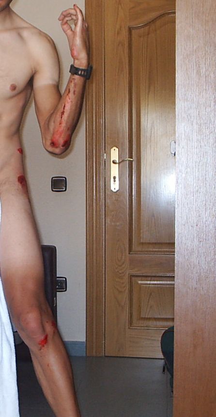 Me quede mareado en el suelo, querian que me levantara, pero yo estaba mas agustito en el suelo tumbado, lo primero que pense cuando me cai fue " Se acabao el sufrir!!" Cuando me levante cogi la bici y segui a mi marchetilla, quedaban 30 a meta y podia hacerlos bien para acabar la vuelta. Llegaron dos tios, Jenaro de Cropusa y un Roper, me puse a su rueda para que me llevaran hasta que Jenaro tuvo la brillante idea de agarrarse a la ambulancia. Yo no tenia muchas ganas de agarrarme, por que solo tenia un brazo operativo y tenia que ser para agarrarme, con el otro solo podia sujetar el manillar, pero con muy poca fuerza. Asi que nos enganchamos y tarde o temprano tenia que llegar el bache que me iba a mandar a la mierda. El bache no era gran cosa, pero como mi mano no estaba operativa pues sali volando y aterrizé en una charca de juncos. Alli me ví todo mojado rodeado de juncos, no sabia ni donde estaba, no se veia la carretera, empeze a escalar para salir de alli y llegue arriba a la carretera, estaba empapado y lleno de hierbas. Jenaro y el Roper se dieron la vuelta para ver donde habia caido, que detalle. Le dije al de la ambulancia que me curara, que ahora ya si que no seguia, aparte de que la bici estaria hecha un Cristo, al igual que yo. Si hubiera habido etapa al dia siguiente habria seguido pero al ser ultima etapa le iban a dar mucho por culo.