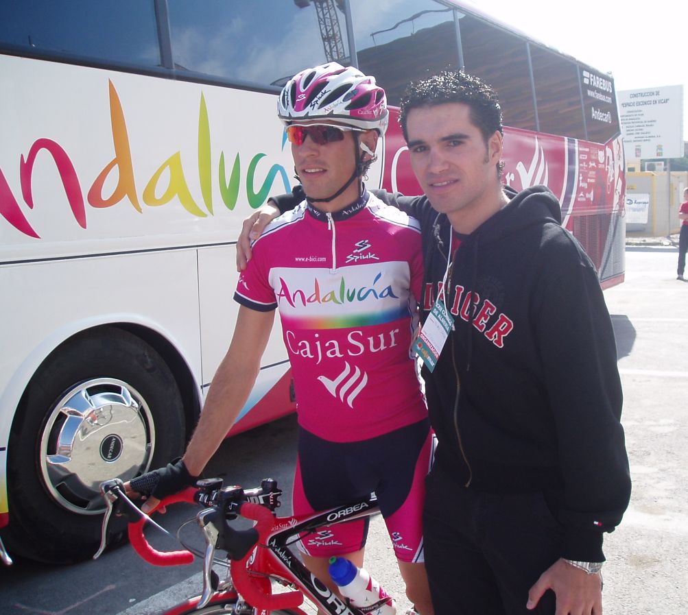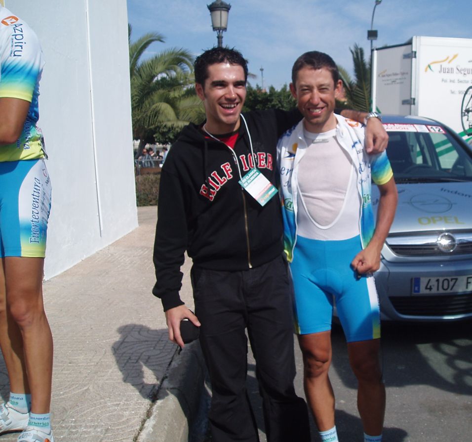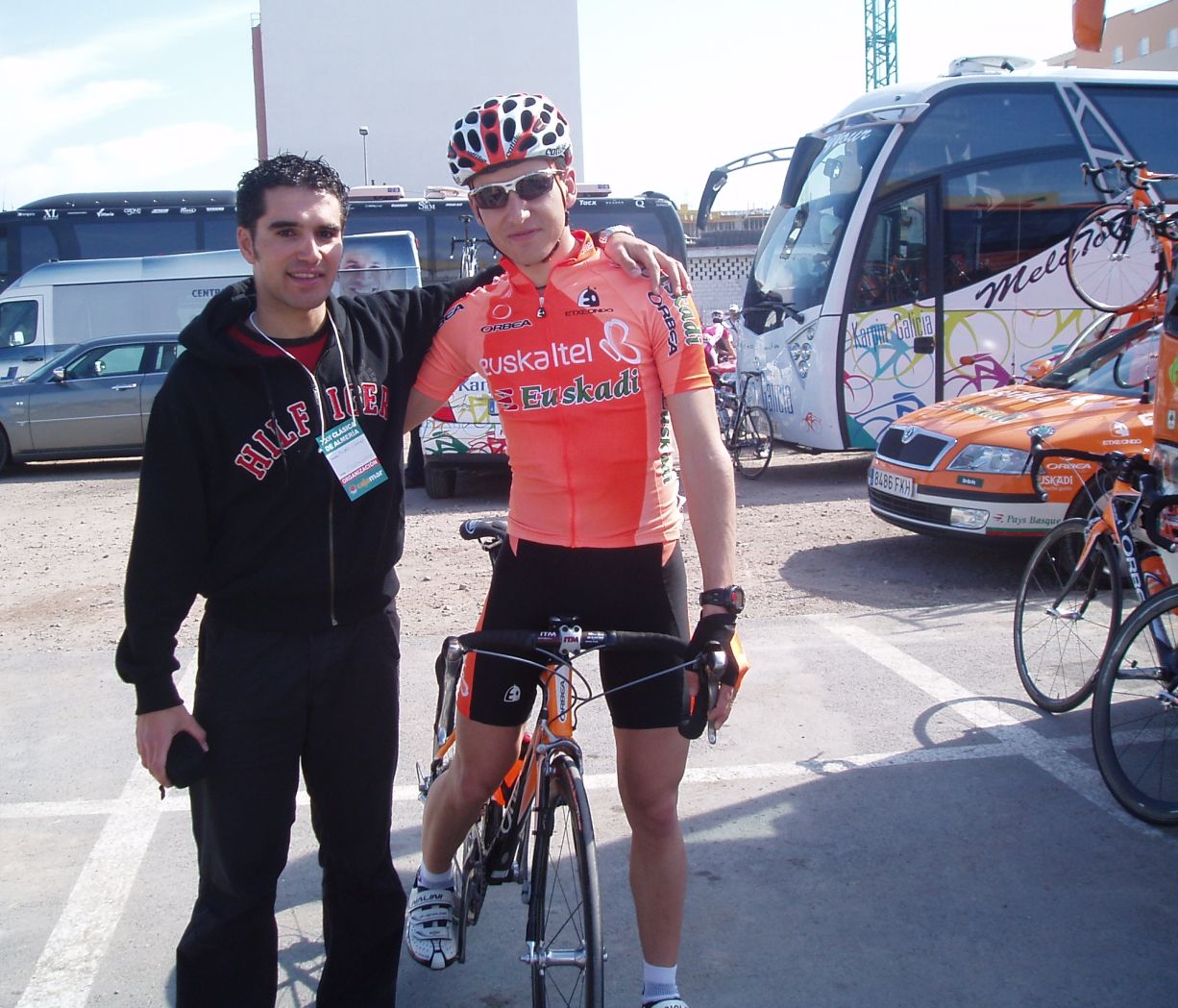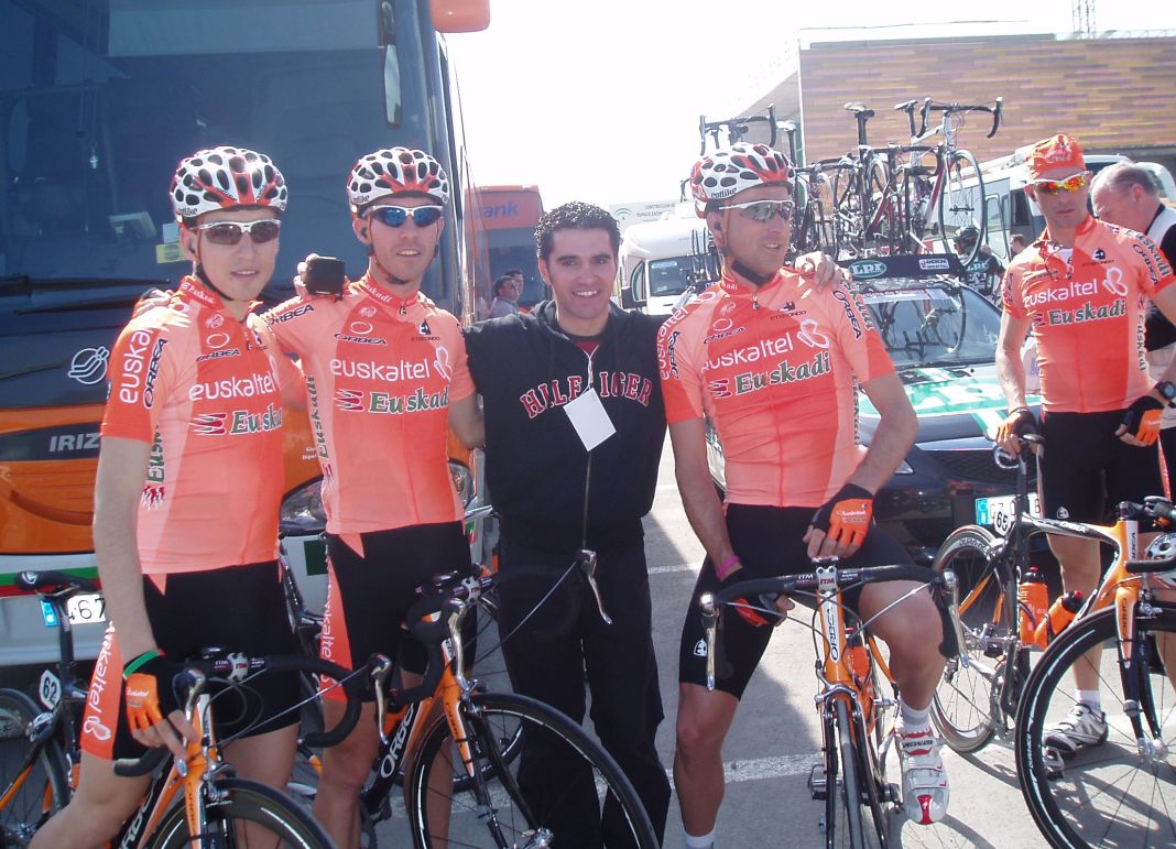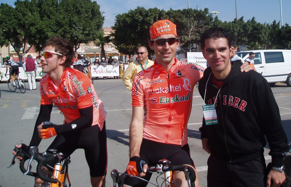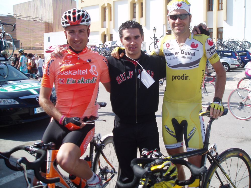 Jesús se sacó fotos con todo el pelotón, aqui con Zubeldia y Iker Camaño del Saunier.