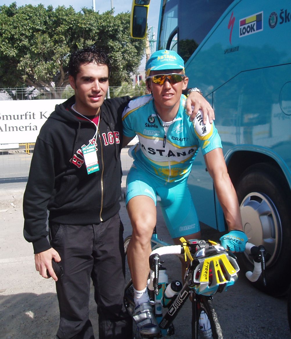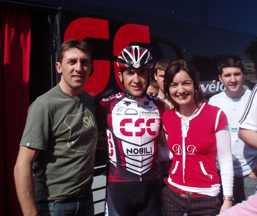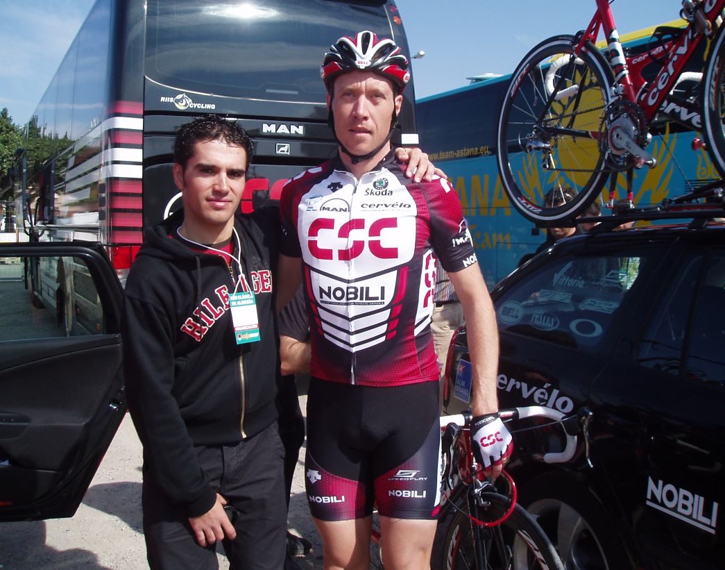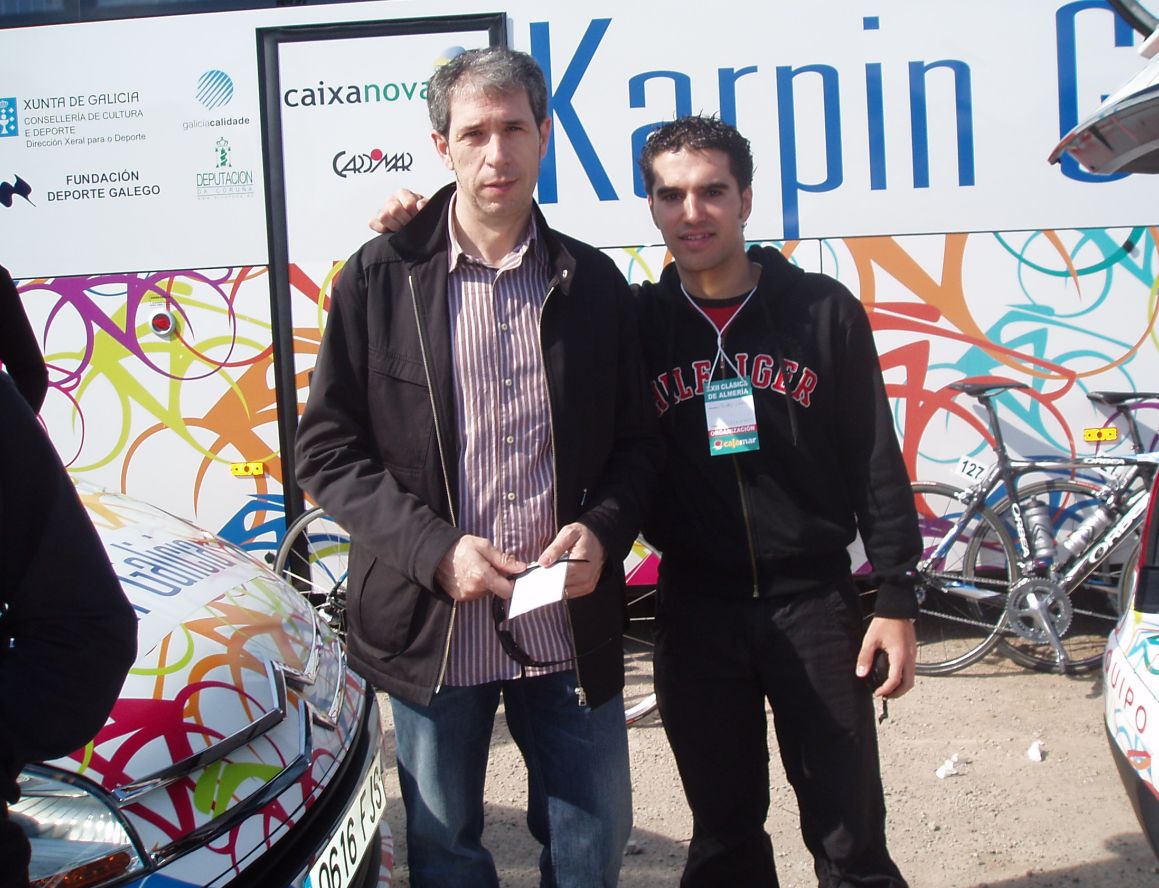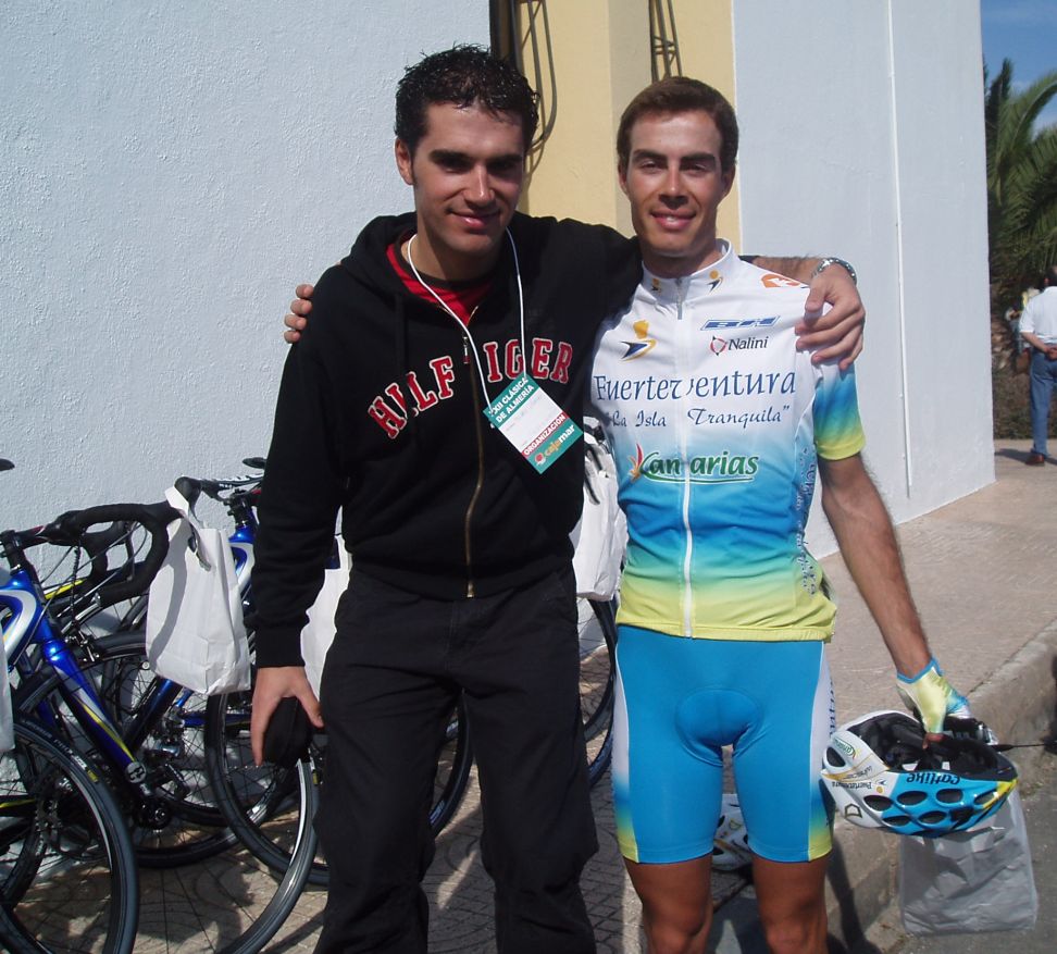 Jesús se sacó fotos con todo el pelotón, aqui con Zubeldia y Iker Camaño del Saunier.