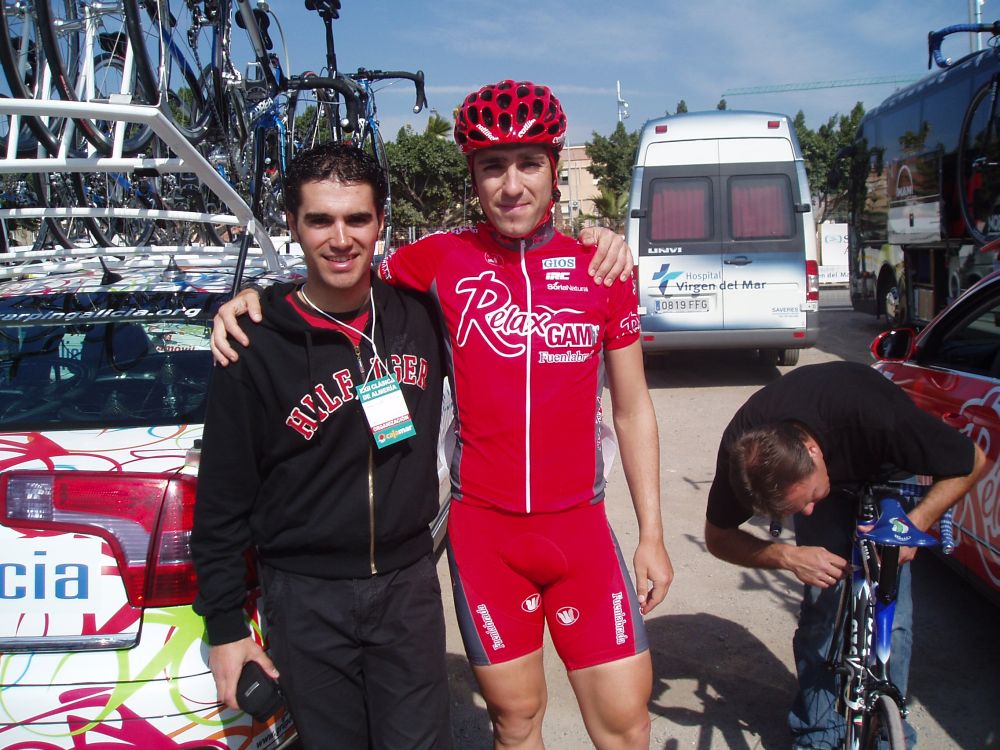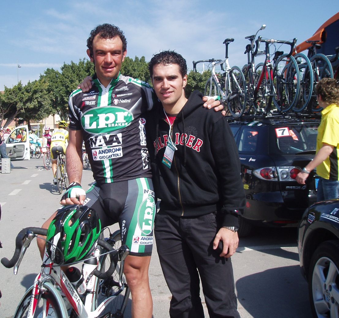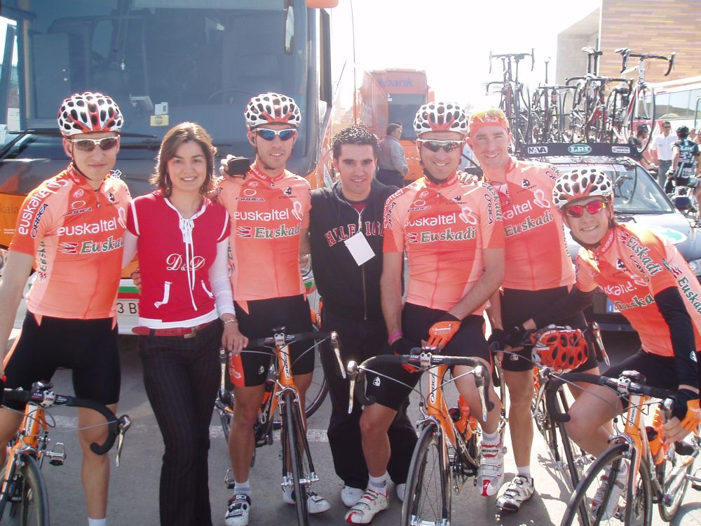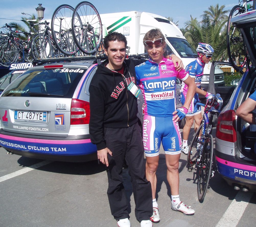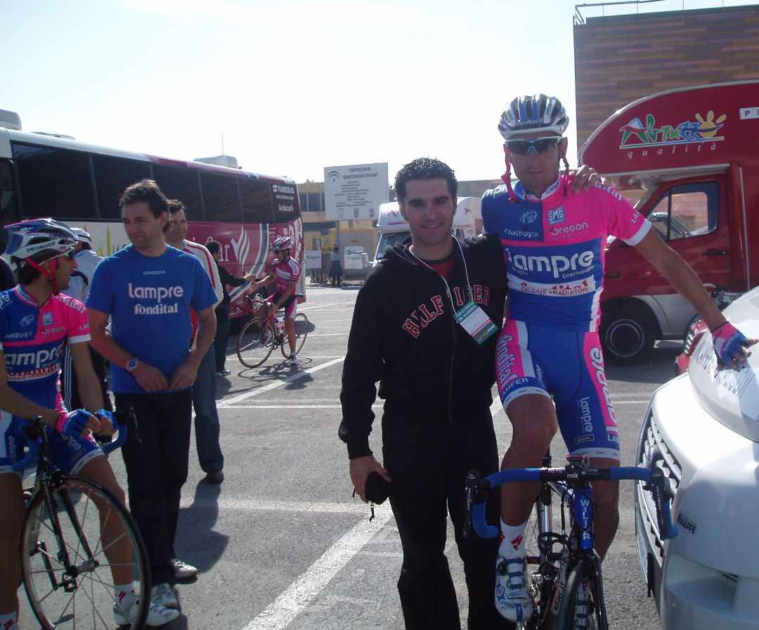 Jesús con los Lampre Fondital. Jesús y su novia eran los jefes de la clásica, consiguieron hacerse fotos con medio pelotón.