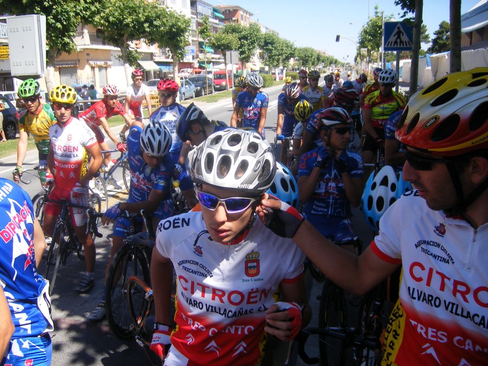 Hacía aire y ya de salida querían encunetar, yo me coloqué alante entre los 10 primeros pero iba cerrando Rafa alante y yo iba fatal por la graba comiendome todo el aire encunetao, pensaba que igual atras se estaba partiendo pero se paró un poco y vino todo el mundo de atras con la forzona y mas cuneta y cuneta, hasta que se acabó partiendo, yo fatal, me quedé cortado en el tercer grupo.