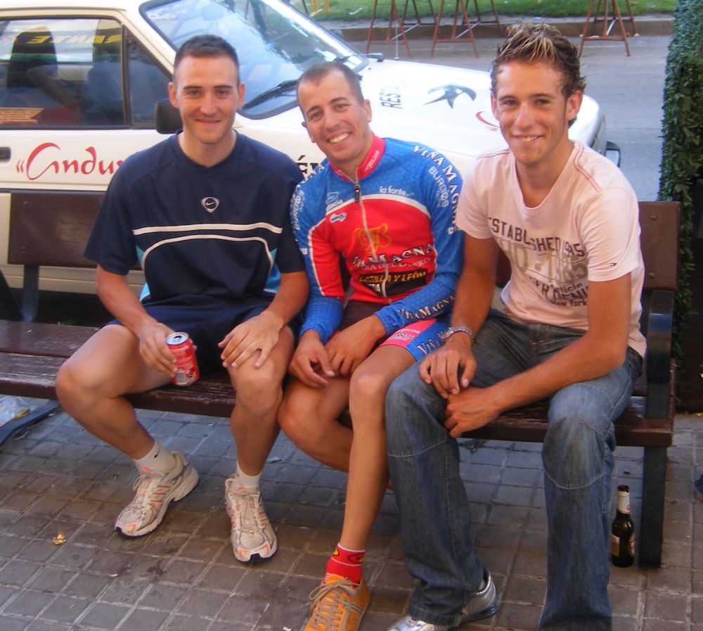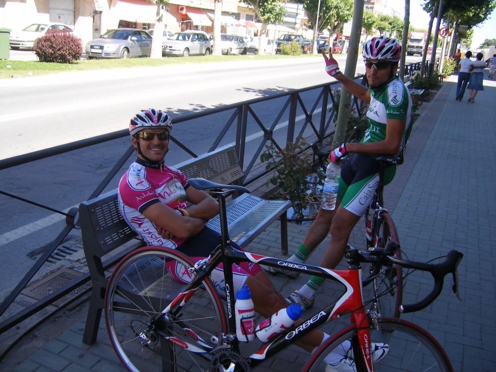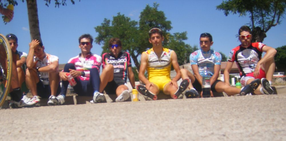 Al final alante aflojaron el ritmo y remando con Dimitri y los dos Sauniers y mas gente fuimos de menos a mas y cogimos un grupillo pequeño, ahí me empeze a encontrar muy bien y tirando con cojones entre todos cogimos al grupo mas grande, de ahí Dimitri no quiso hacer parada y arrancó, saltó con el Oscar Laguna diciendo- Que me voyyyyyyy!! - Que me voy de excursion con Dimitri!!!!.. y medio riendose se fue y nos fuimos unos 7 o 8, que rapidamente abrimos muchisimo hueco con el pelotón, donde iba Carras, alante iba el Mate, y mas alante los 3 magnificios, Kim Soler, Palou y y el Peñas.