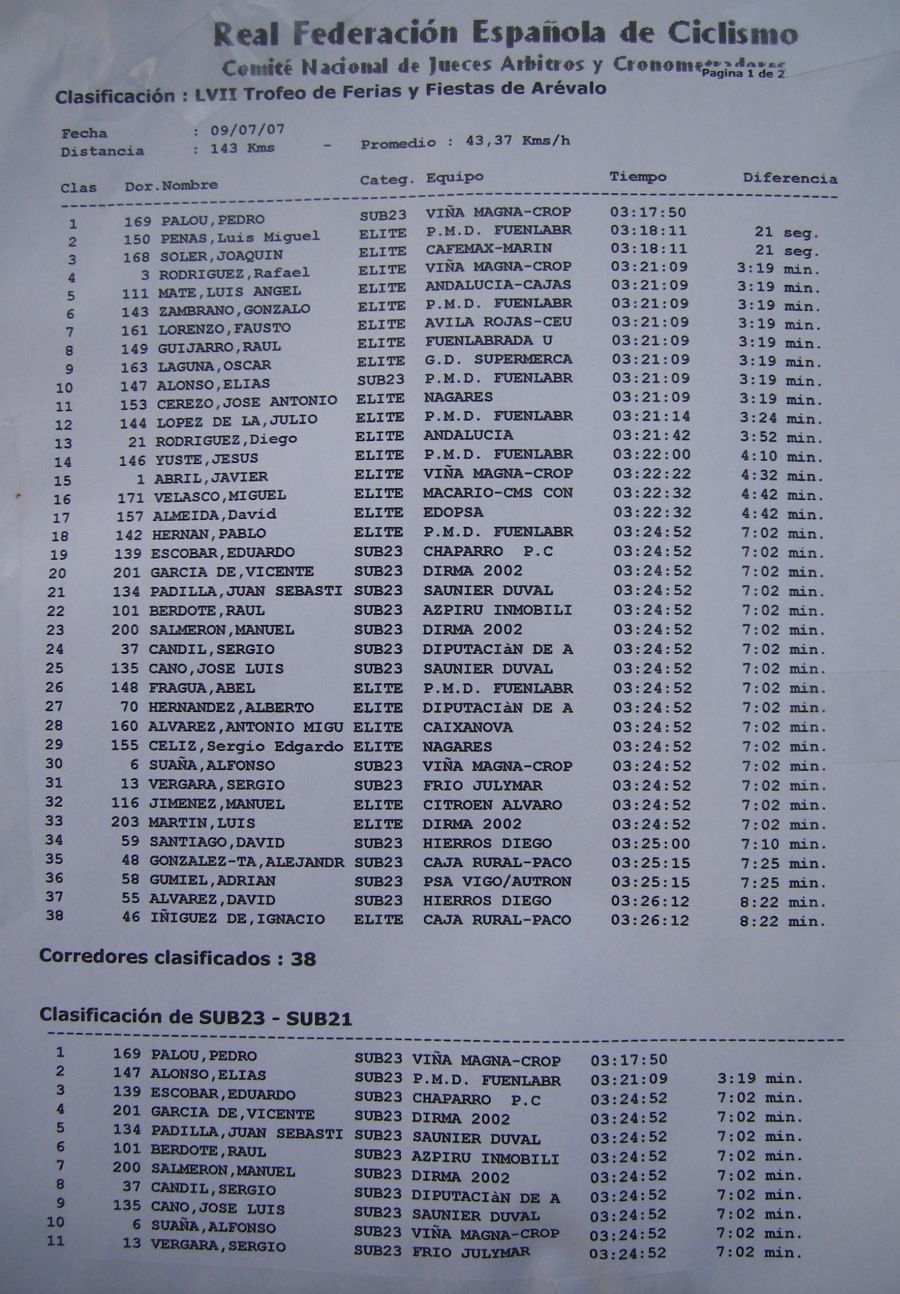 Campeonato del Mundo de Arevalo, 100 ciclistas se dieron cita en la classicisima Fiestas y Verbenas de Arevalo, disputada el Lunes 9 de Julio a las 5 de la tarde, como siempre en Avila aunque liaron la cosa con que era a las 10, al final fue a las 5 como siempre.