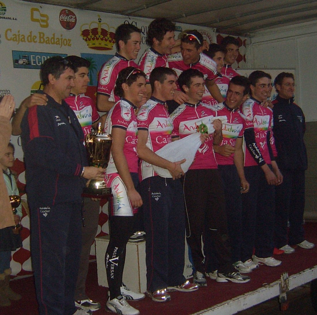 ![]() Los Junior con el mítico jamon que acredita ganar por equipos en Don Benito, Jamón que también ganaron los Elite-Sub23 hoy, al dia siguiente. |