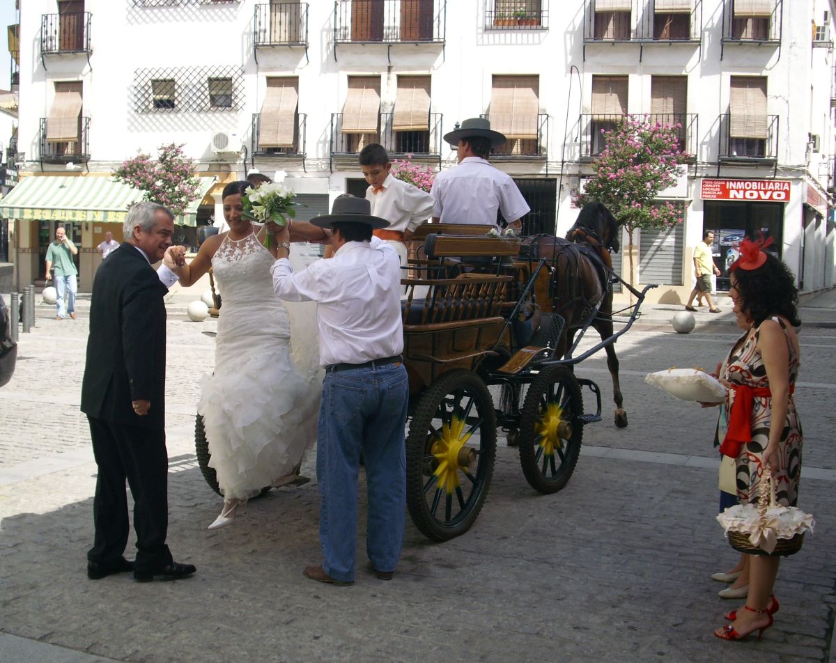No es normal en Diegoweb reportajes que no sean de ciclismo pero el mítico ciclista cordobés Antonio Arenas se nos casaba!, aqui llega la novia Tere, bajando del carro de Caballos, con glamour.
