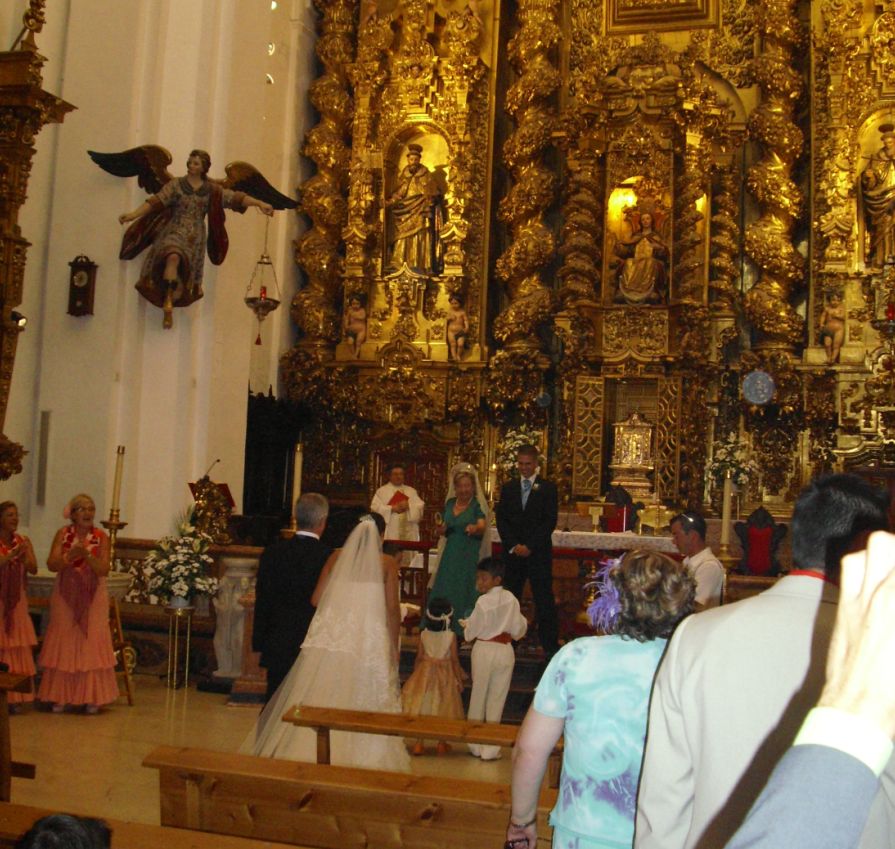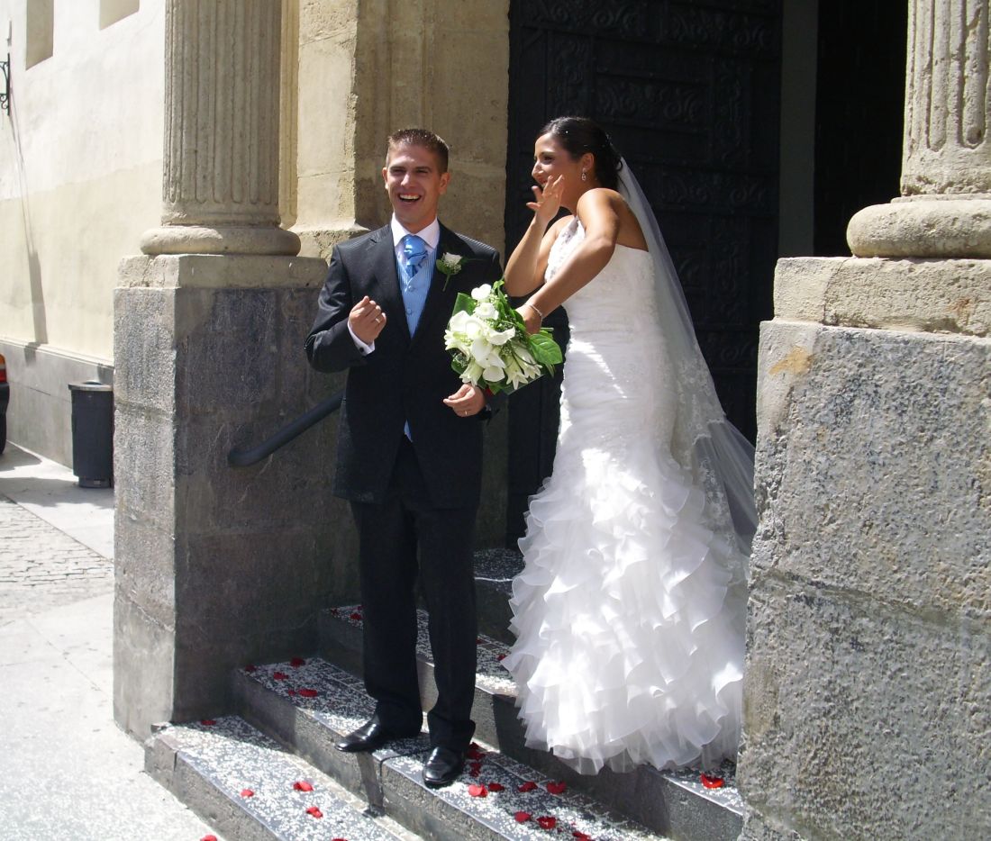 La novia y el Padrino, preparandose para entrar en la Iglesia de la Trinidad de Córdoba.