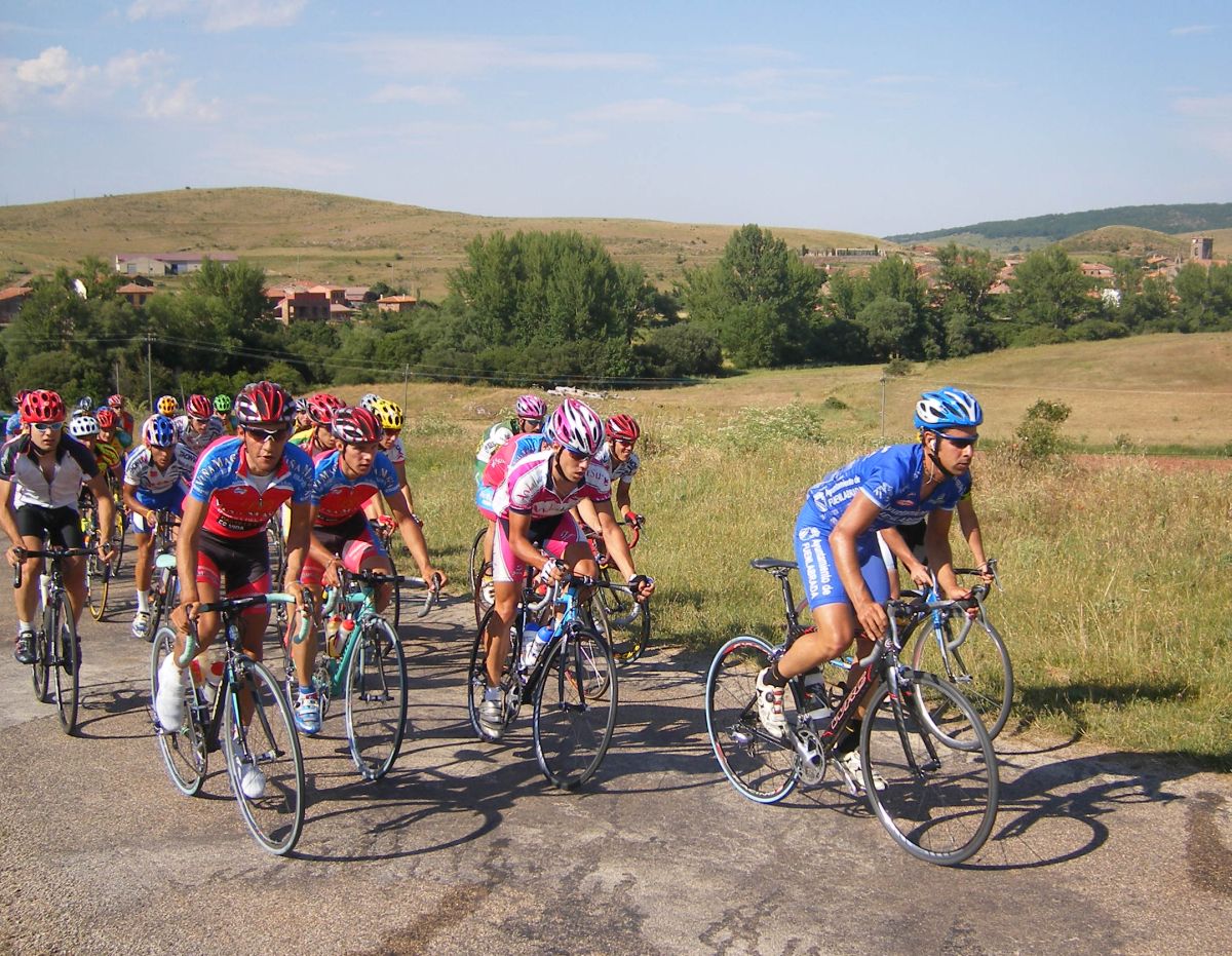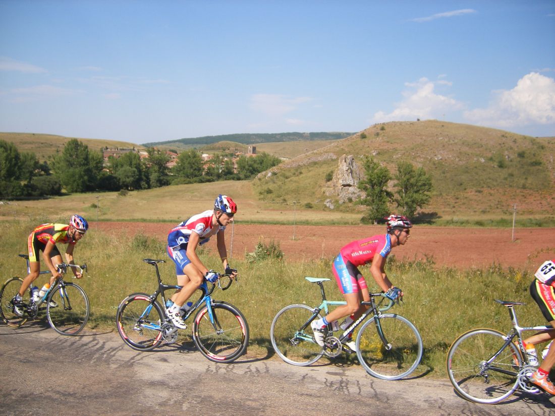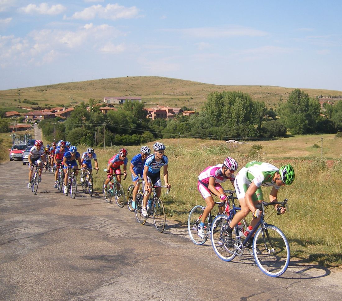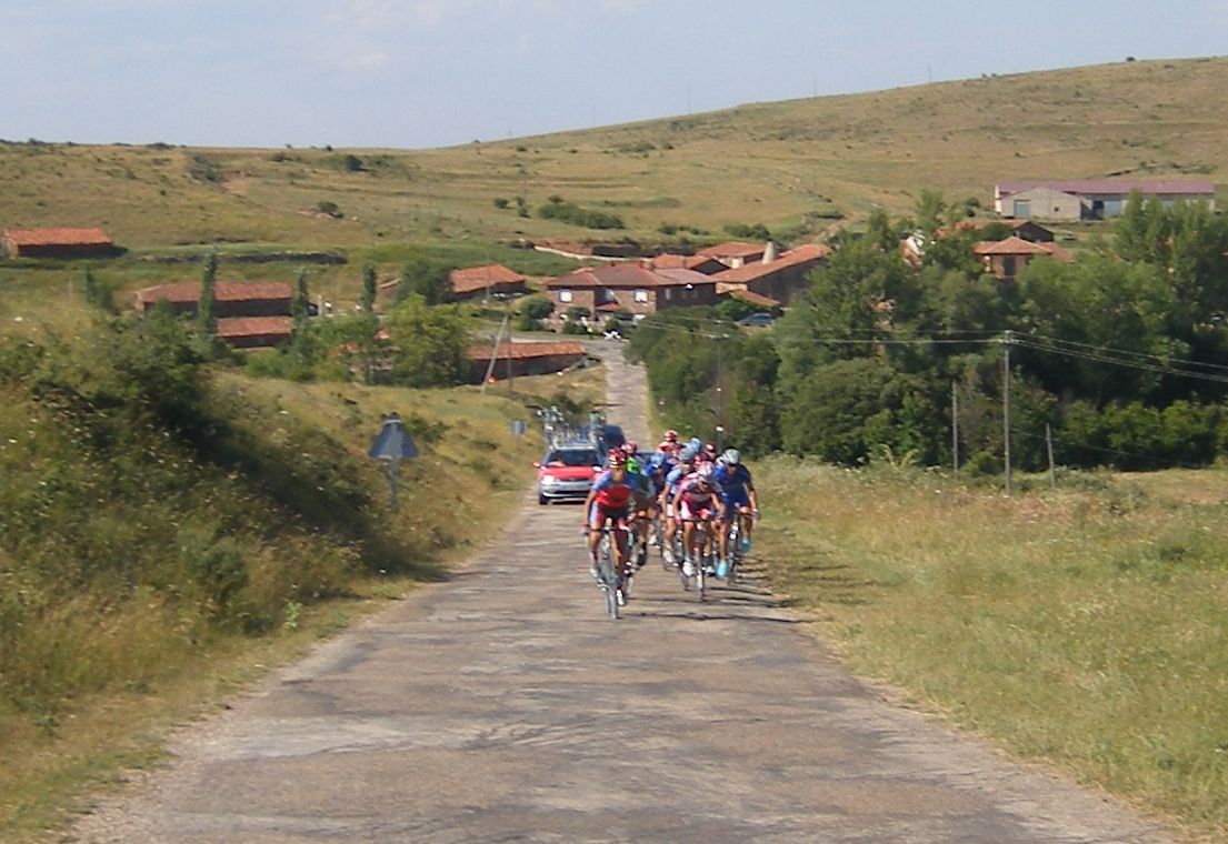 Sabado por la tarde, primera etapa de la Semana Burgalesa, Mini Vuelta a Burgos Elite-Sub23 de dos etapas, primeros kms llanos enfilados con aire de costado hasta que giramos a la derecha y empezamos los repechitos.