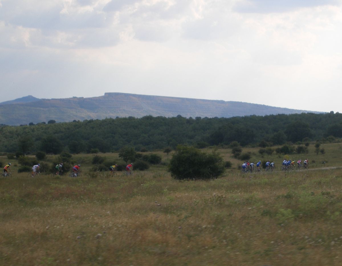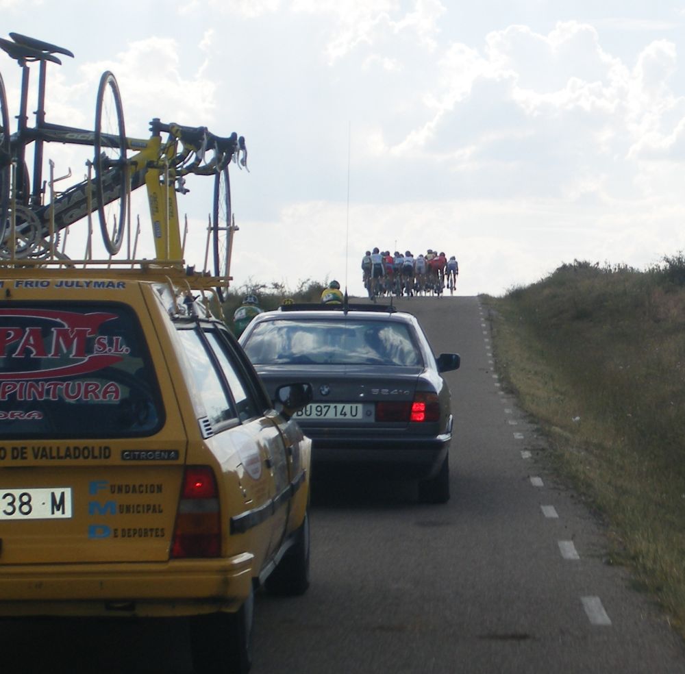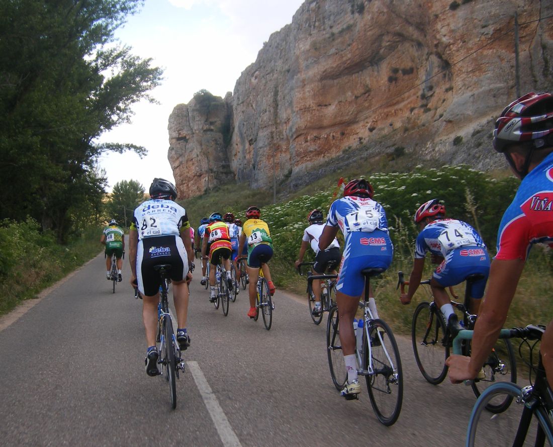 Sabado por la tarde, primera etapa de la Semana Burgalesa, Mini Vuelta a Burgos Elite-Sub23 de dos etapas, primeros kms llanos enfilados con aire de costado hasta que giramos a la derecha y empezamos los repechitos.