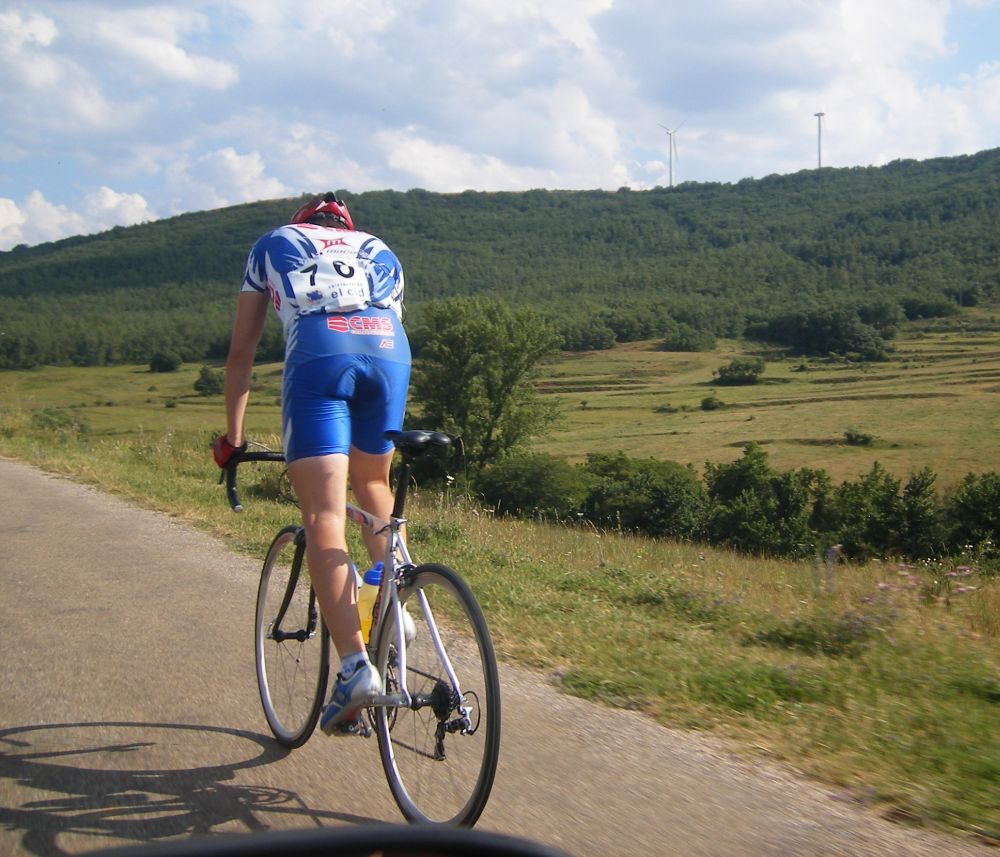 La carretera era muy mala y muy pestosa, estrecha con asfalto de pueblo, pero se iba bien porque ibamos a relevos, aunque se escaqueaba mucha gente, yo me cabreaba y me escaqueaba también, dimos un bucle y volbimos a dar la vuelta con la subida de antes.