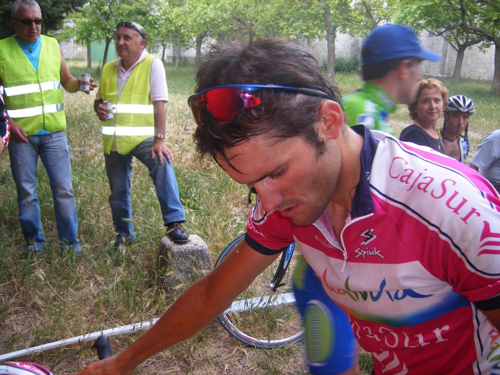 Muchos ataques hasta que se hizo la buena subiendo un repecho de carretera mala, yo arranqué cuando ya estaba hecha, me quedé a medias pero llego Carlos Abellán del Odeco y me llevó alante, nos juntamos en la escapada unos 20 tios.