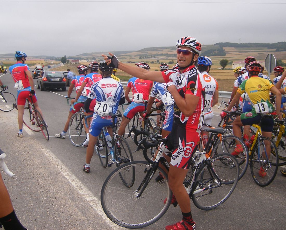 Segunda etapa de la Semana Burgalesa, domingo por la mañana, bastante fresco en Burgos, nublado, aire de cara, picando para arriba, terreno ideal para el Diegoweb Automatico, arranqué diez mil veces, me meti en todas las fugas, pero ninguna fue buena, vi que ibamos rapidisimio y que aun asi nos cogían siempre, increible como se iba.