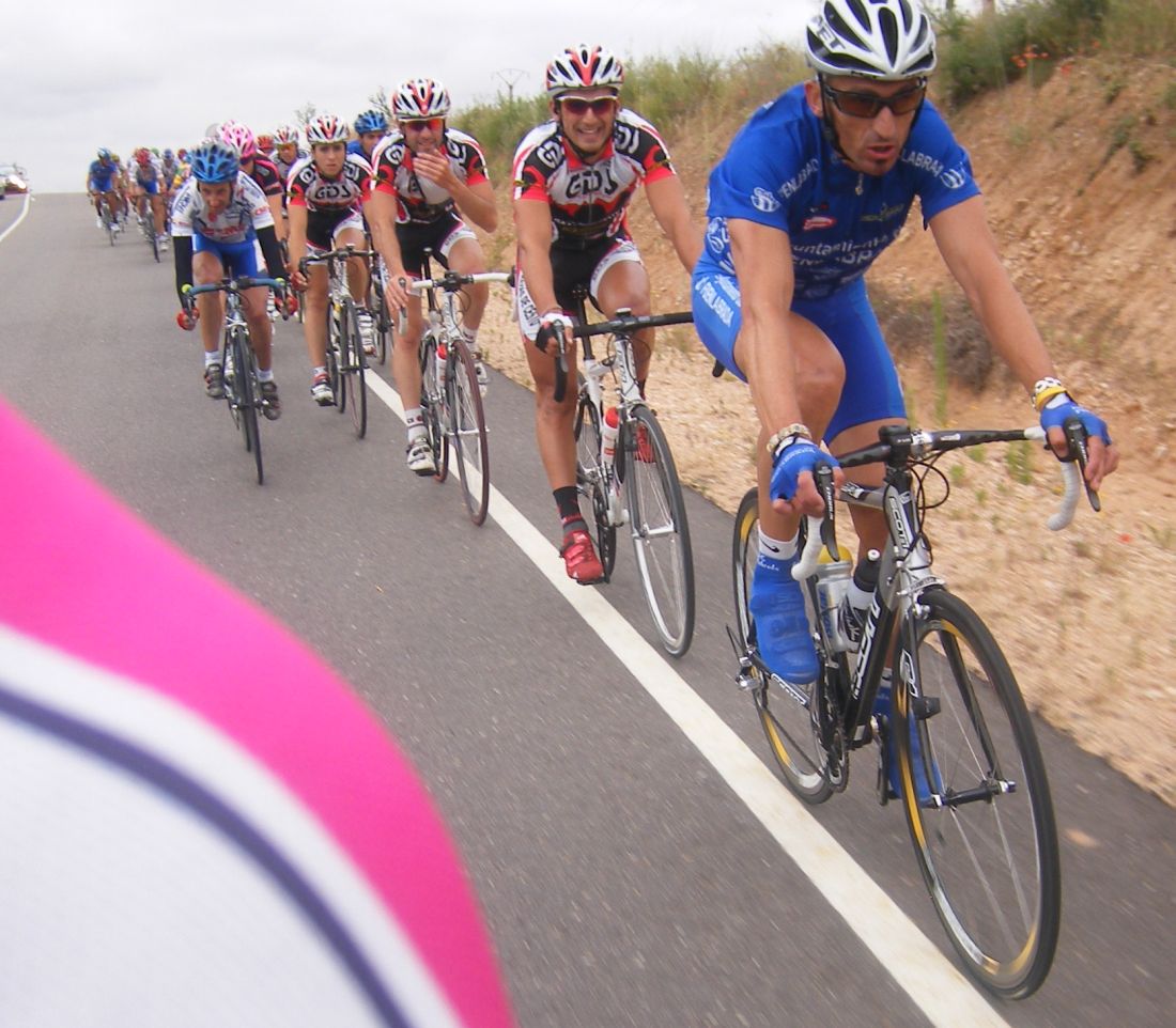 Enganchamos con un grupo donde iba tirando Abellan, que pronto engancho con otro grupo, eramos unos 20 en total, y por delante a escasos segundos Pablo Hernan solo cabalgando hacia la victoria.