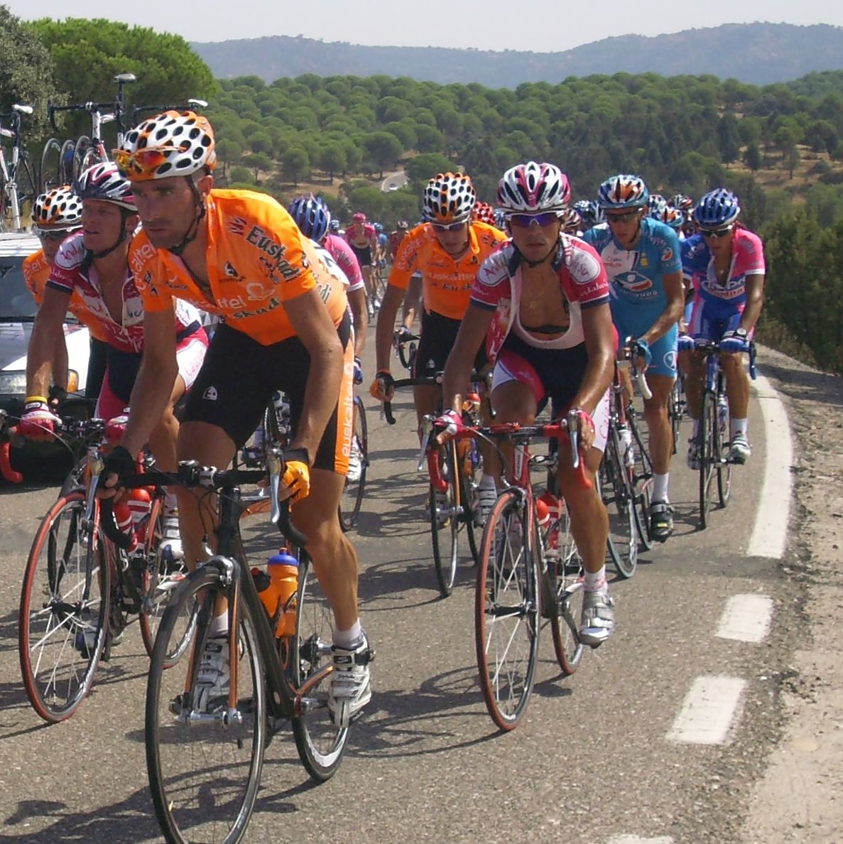 ![]() También podemos ver a Javier Mejías de Saunier Duval y Dioni Galparsoro del Euskaltel detras de Duque. |