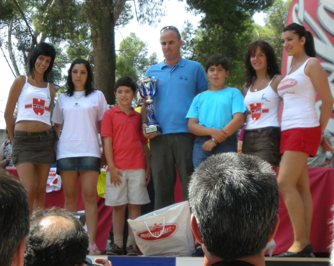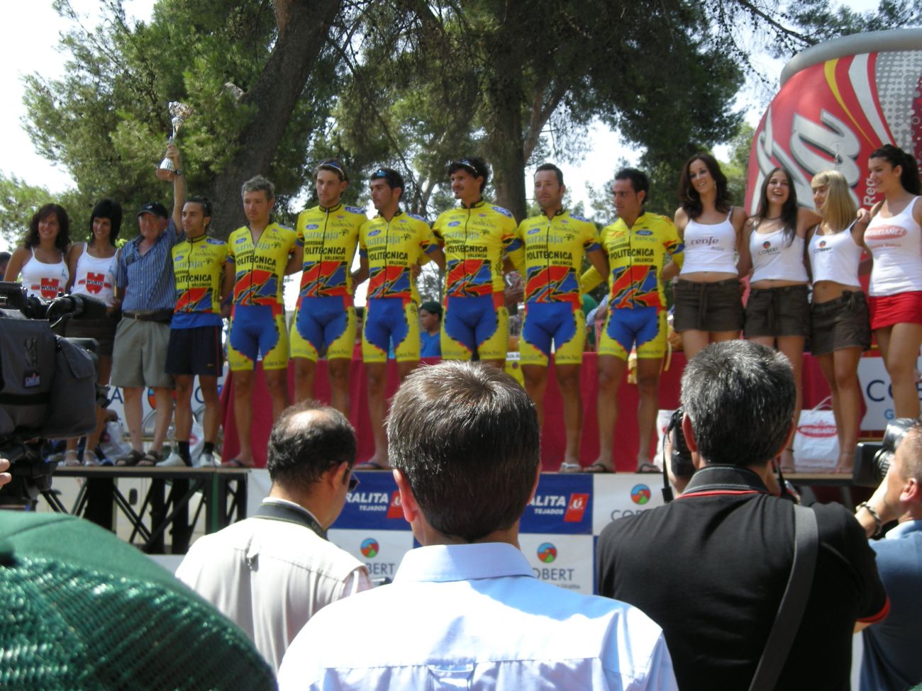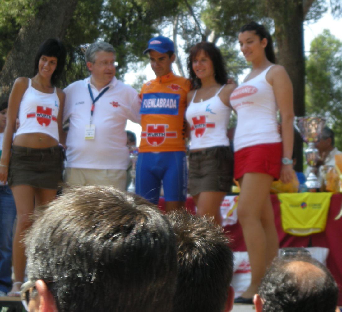 El Jaime la lió en la segunda etapa y subió al podio con las chicas de Bahamontes y el propio Bahamontes con su gorra marinera.