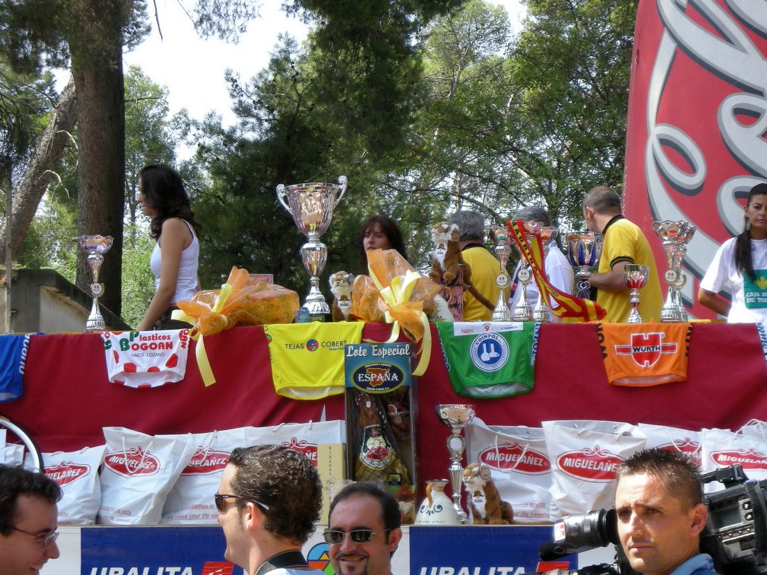 Miguel Angel Candil del Dirma en el podio como lider de la Montaña en la segunda etapa.