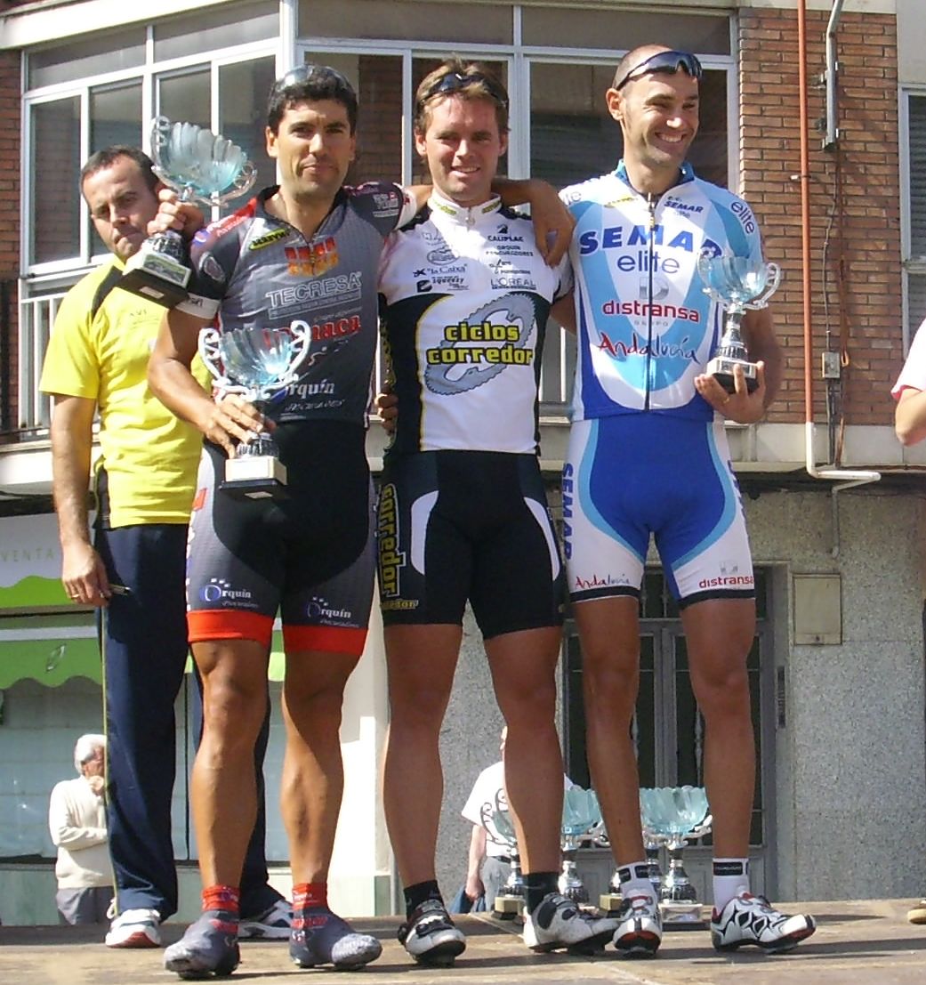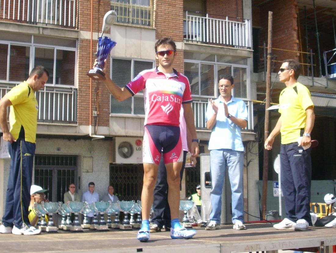 Los dos que habían ido escapados desde el principio se habían quedado, solo ibamos los tres a 300 metros de Meta, pero ibamos los tres muertos, yo ví un hueco por la izquierda entre los setos del parque y Lorenzana y me metí a esprintar por ahí, pasé esprintando dandolo todo, no venía nadie, la meta se acercaba, seguí a tope hasta que llegué a la meta y pude levantar un brazo en señal de victoria, había vuelto a ganar la Classicisima de Puertollano, para mi un honor ganar en el recorrido nuevo, mas duro, quizas gané por eso, si hubiese sido mas blando no habría tenido chispa para ganar.