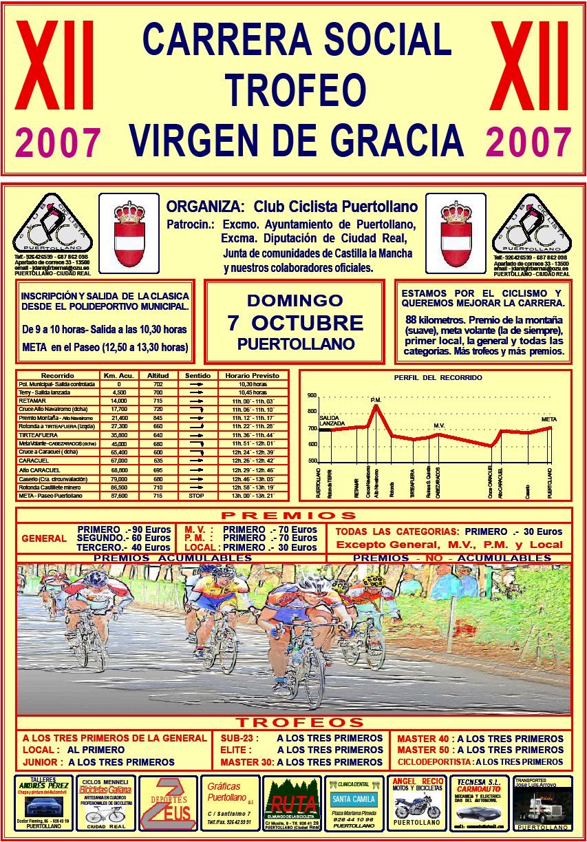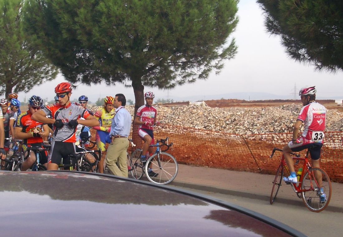 Clásicisima de Puertollano, la Socialissima, donde se pelean todas las categorias desde Junior hasta V-50, este año era mas bonita, habían añadido 20 kms mas y un puerto en los primeros kms, con lo que la carrera eran 90 kms con 2 puertecillos que iban a ser los platos fuertes del día, aunque el decisivo era como siempre el Col de Caracuel, donde siempre se tensa a muerte la carrera y se selecciona todo. Este año corrimos Torralbo y yo del equipo Andalucía Cajasur, para ayudarnos a conseguir la victoria.