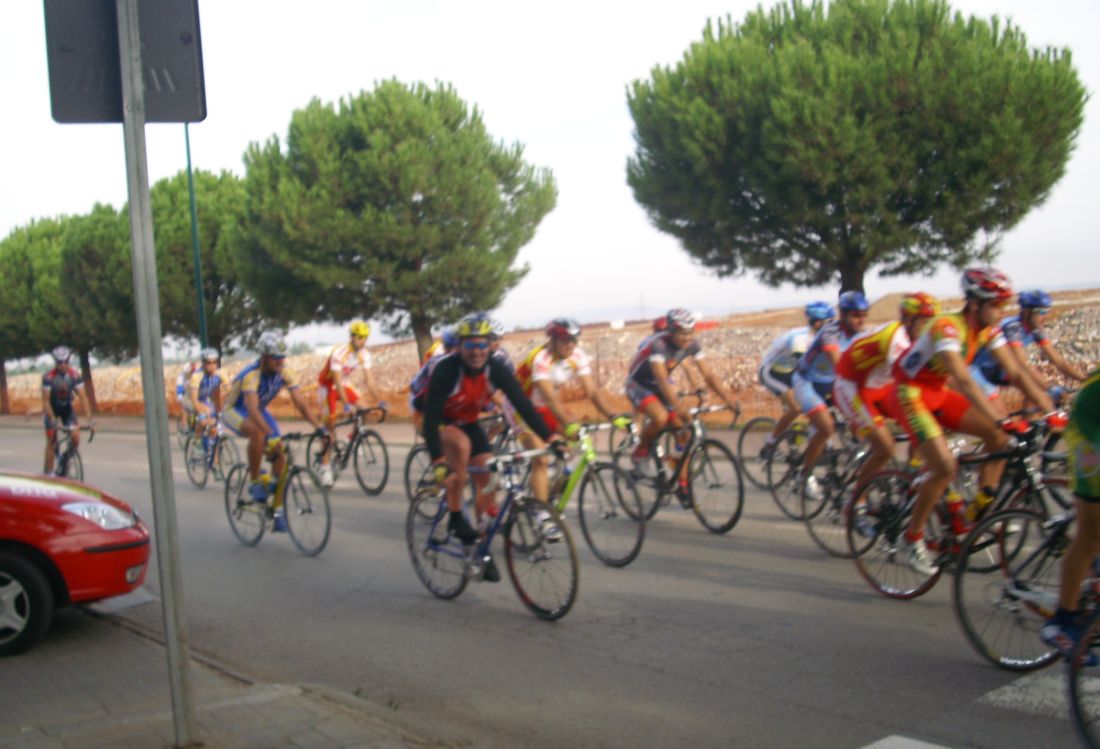 Cuando neutralizé a los tres arrancó el Sargento, no había tregua en la carrera, si se paraba un poco arrancaba la gente, pero salieron a por el Sargento y otra vez todos juntos, se sucedieron muchos ataques camino de Almodovar del Campo pero no se iba nadie, pasando la rotonda de Almodovar arranqué yo a por un campeón de Castilla La Mancha que lo había hecho previamente y le cogí pasando el cruce donde se cogía la carretera de Cabezarados, lugar donde hay un repecho que en otras ocasiones cortaba la carrera, le pasé y me puse a tope en ese repecho a ver si liaba un corte bueno.