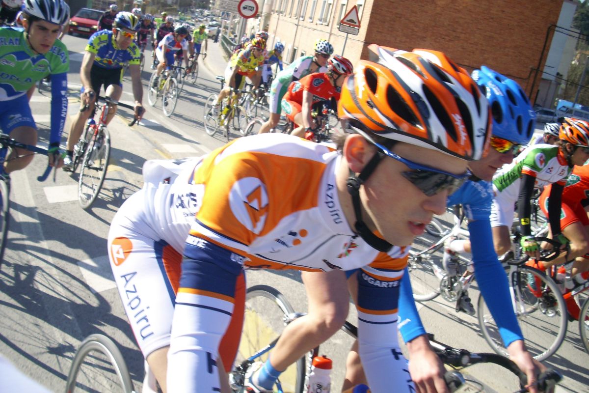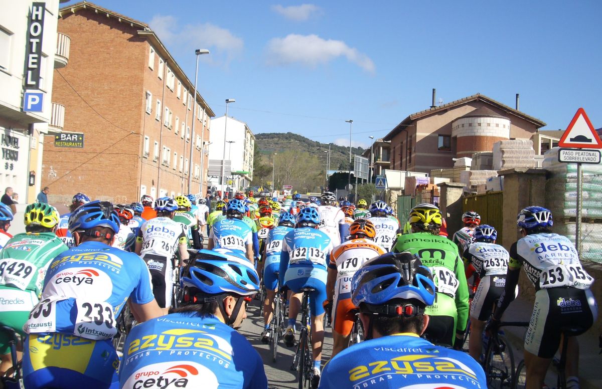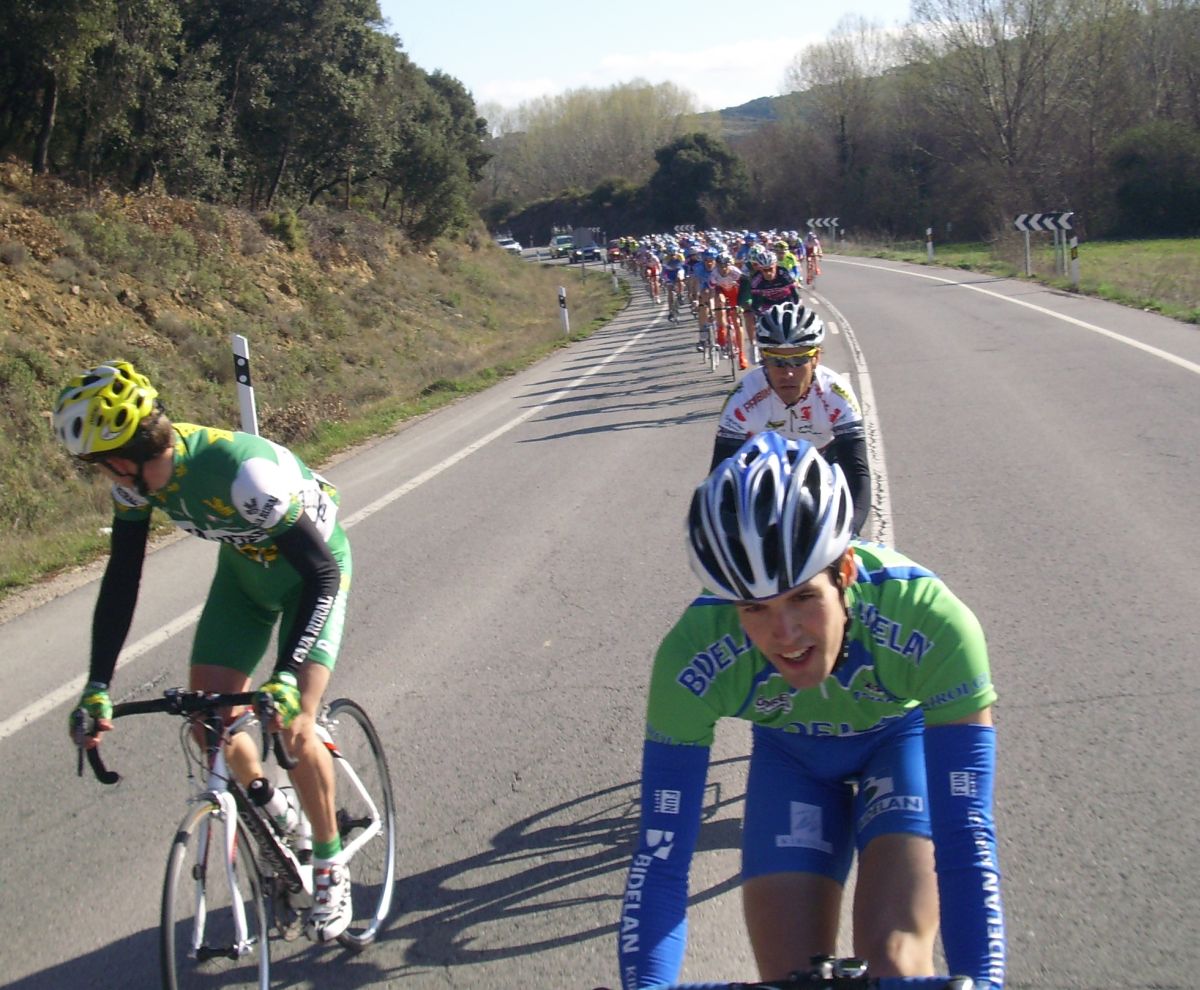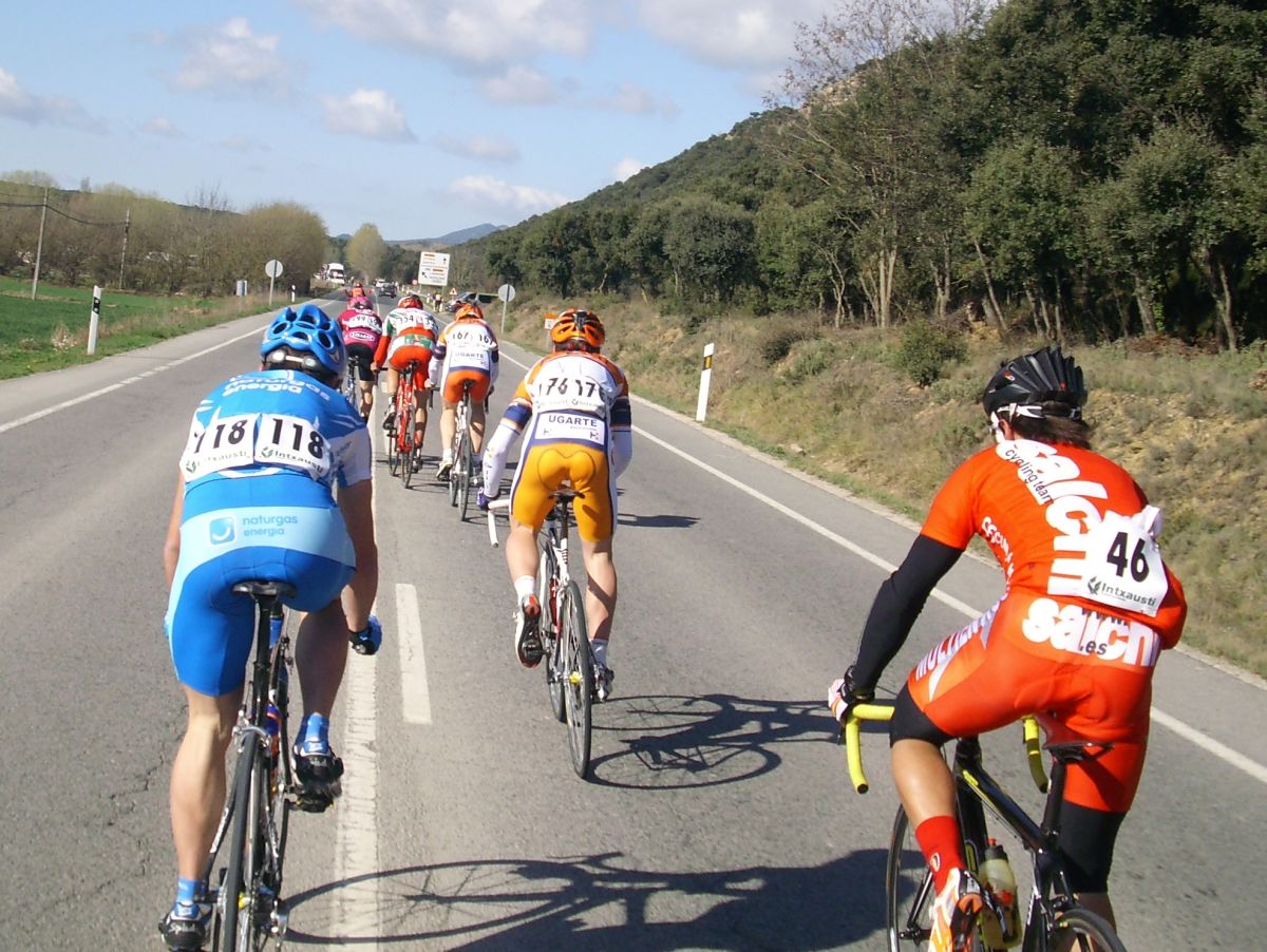 Descenso rápido y zona de repechos, donde se hizo un corte que pilló Jonathan, bajamos a Estella a velocidades vertiginosas con rotondas y aire de culo para mas inri y nuevo puerto, tendido, de 3 km, me situé alante y salí a cortes subiendo, pero empezaron a remacharnos, y ahí aguanté el ataque, coronamos un grupillo de 30 tios, pero bajando se paró y nos pìlló todo el pelotón.