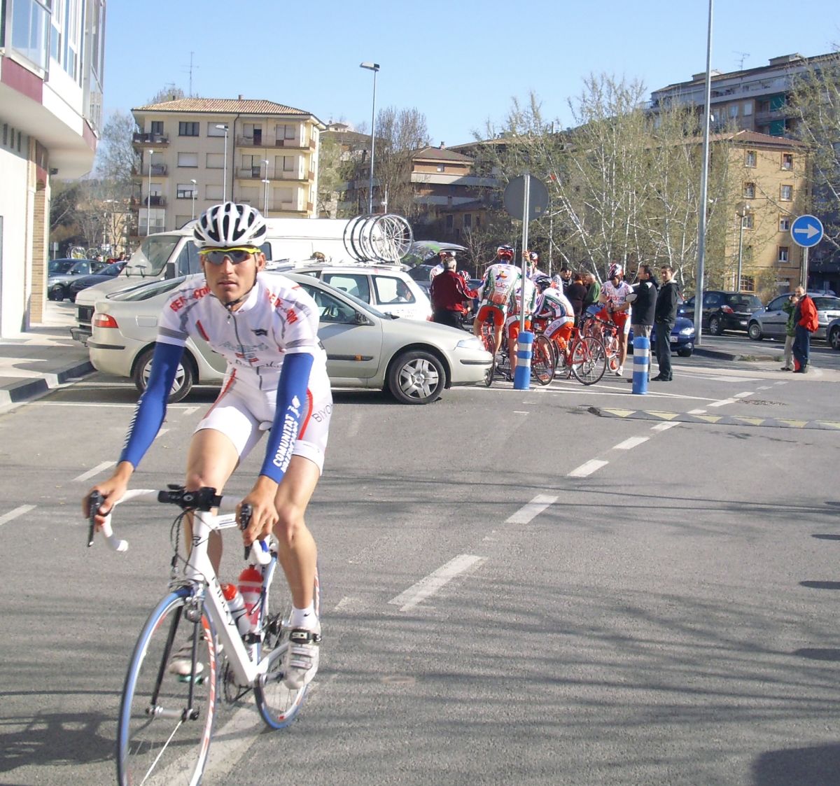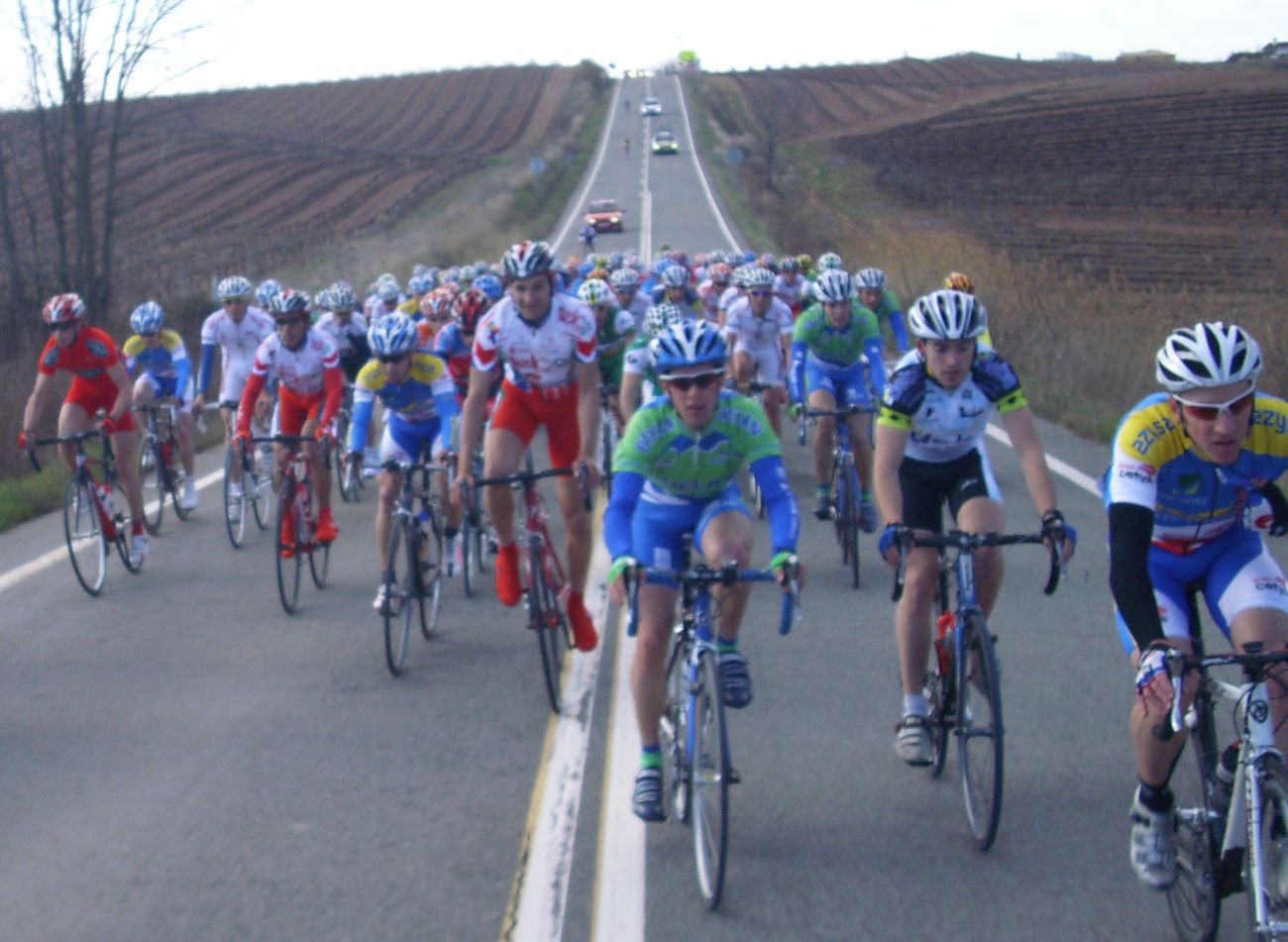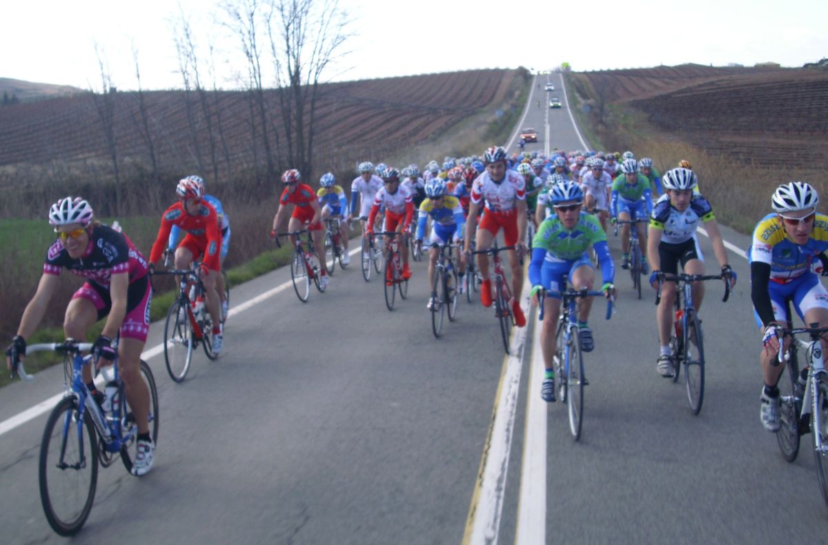 Descenso rápido y zona de repechos, donde se hizo un corte que pilló Jonathan, bajamos a Estella a velocidades vertiginosas con rotondas y aire de culo para mas inri y nuevo puerto, tendido, de 3 km, me situé alante y salí a cortes subiendo, pero empezaron a remacharnos, y ahí aguanté el ataque, coronamos un grupillo de 30 tios, pero bajando se paró y nos pìlló todo el pelotón.