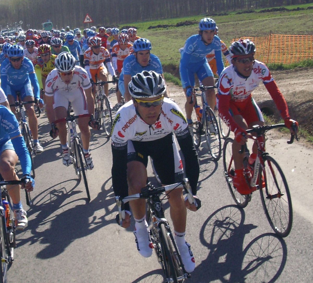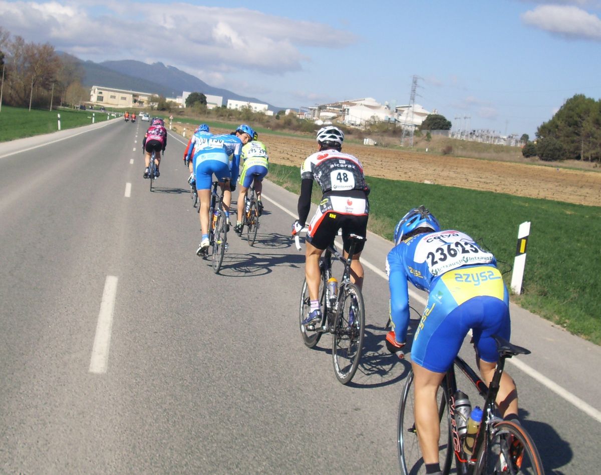 La fuga de Jonathan fue neutralizada coronando el puertecillo, los ultimos que quedaban por delante fueron cogidos en las rectas de despúes, donde se abrió gas en el pelotón, giro derecha, aire costado culo y ibamos a llegar a uno de los puntos importantes de la jornada, un repecho duro, pero con una bajada aun peor.