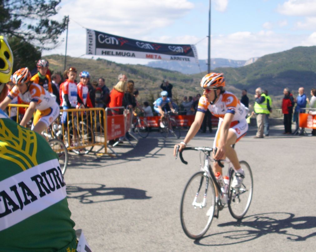 Iniciamos el muro y arranca con el plato el campeón de Euskadi del Azpiru, Filgueira, uno que de lejos confundía yo con los de mi equipo porque iba de blanco aunque no me cuadraba que llevara el casco naranja. Salieron a por el y yo me metí a rueda, aguantando ahí, al final hice tercero del grupo en le Muro de Puy, el 15º en la carrera. Por delante exhibición clara de los Lizarte con Andrey Amador y Martin Iraizoz, que ganó la carrera. Dani iba con ellos pero lo esturrearon y al final hizo 10º. El Pelotón llego mas tarde con unos 30 tios escasos, de 142 que salimos, prueba de la dureza de esta carrera.