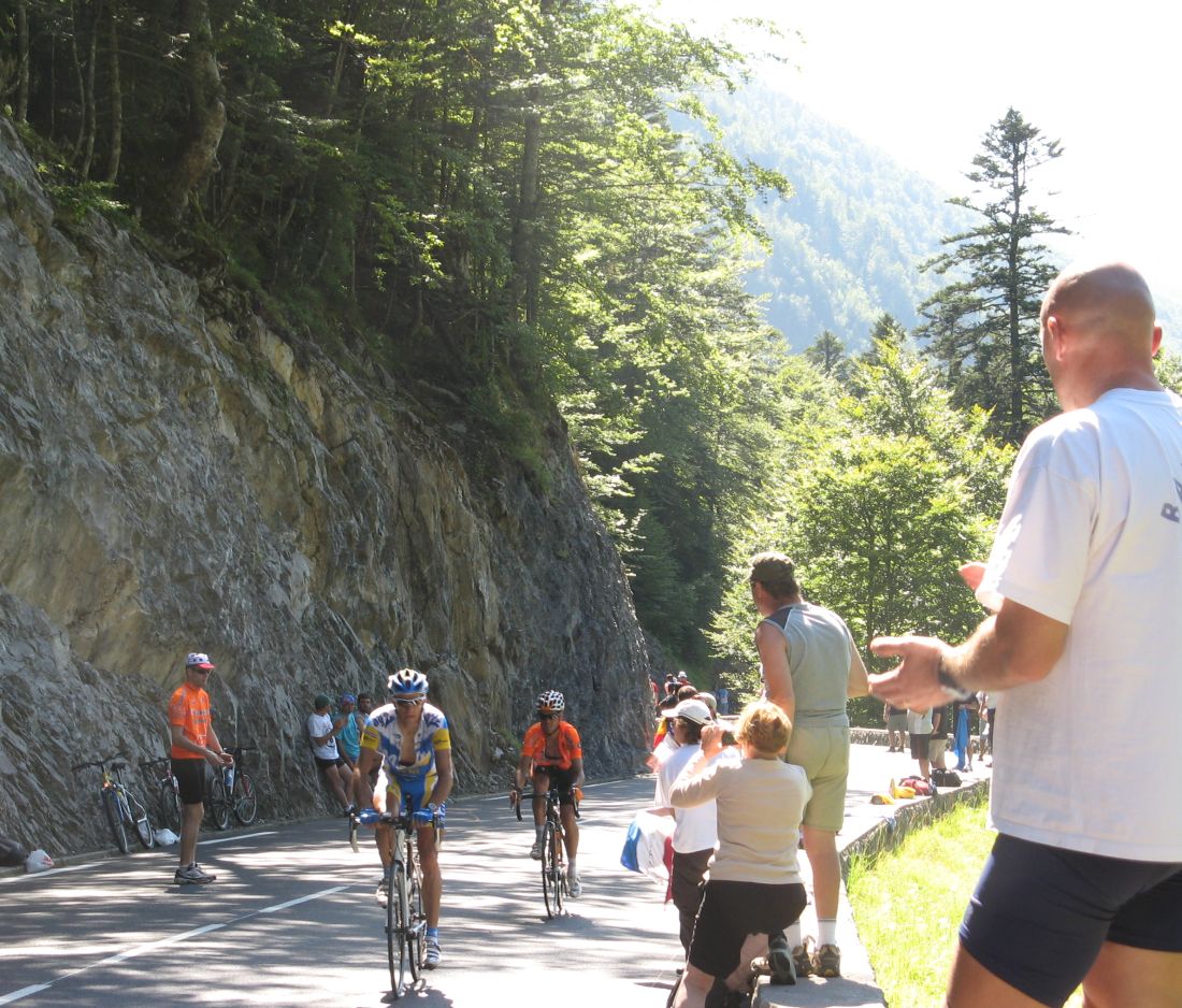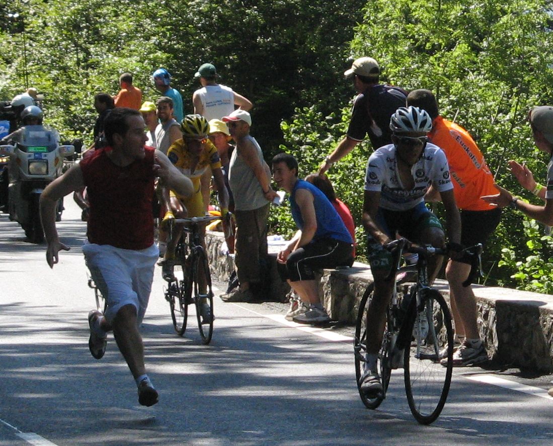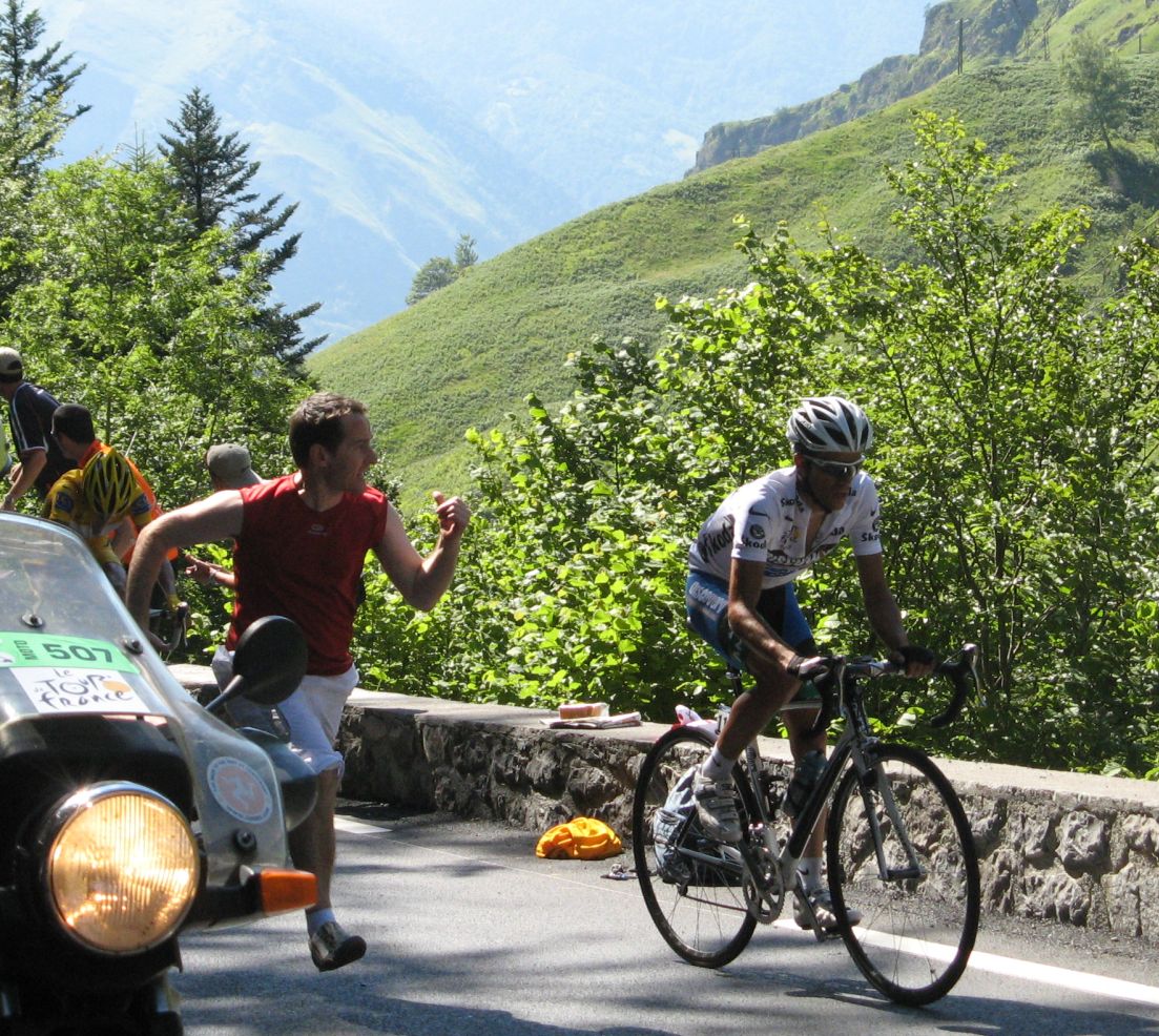 ![]() El perro blanco no pierde detalle del Tour, el Tour de Francia también llega al público canino, pero que si le dan jamon se va pal jamon. |