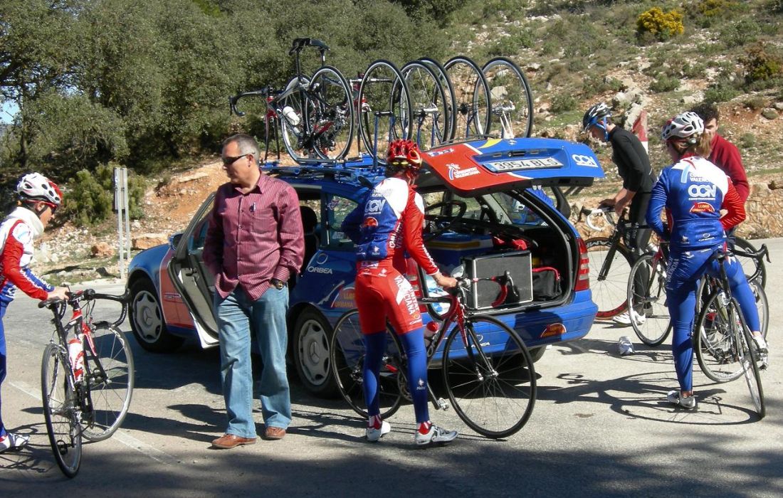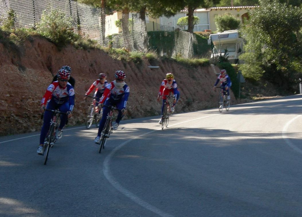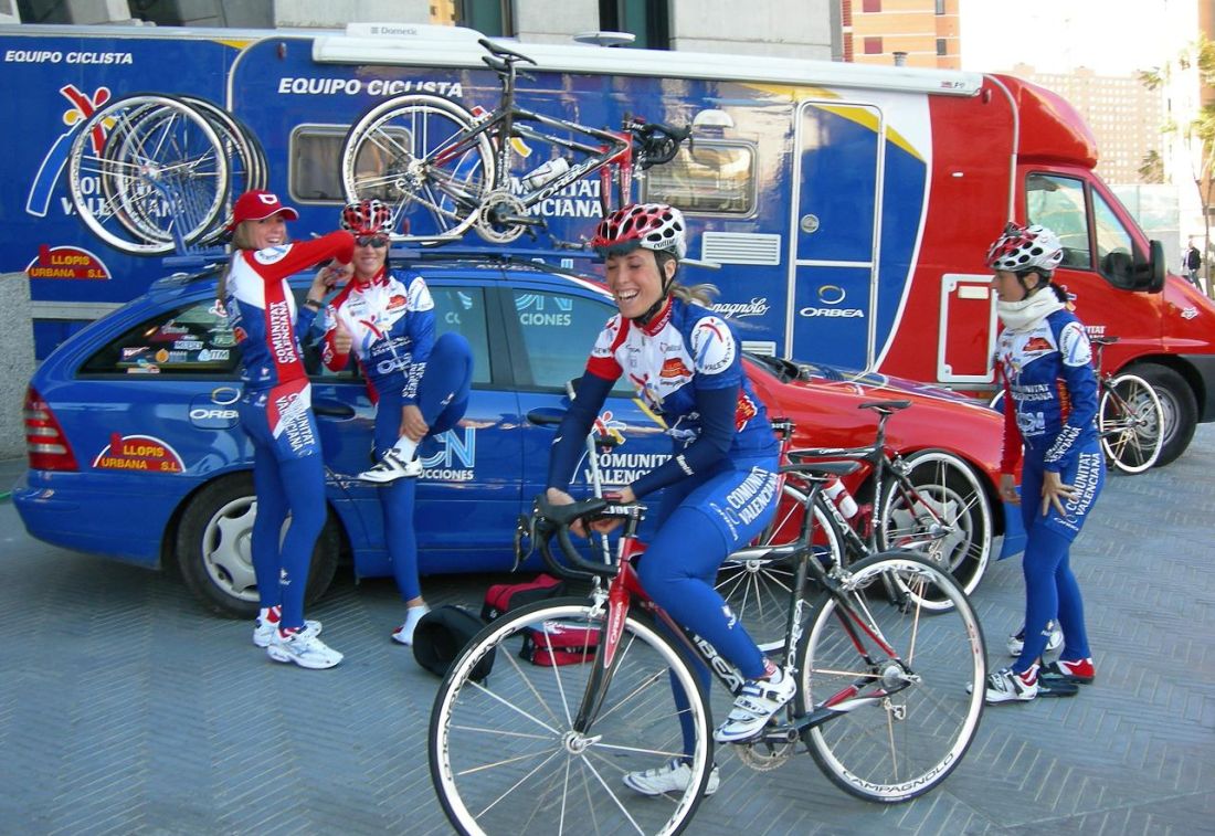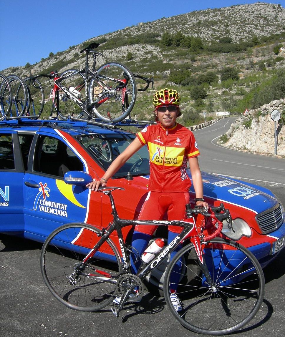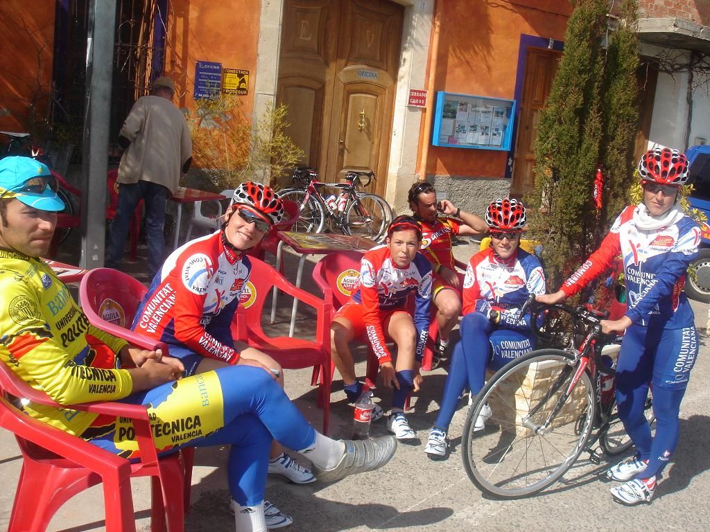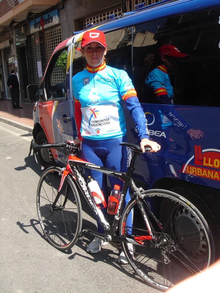 ![]() Ana Sanchis saludando y Maria subiendo uno de los míticos puertos de la sierra alicantina. |