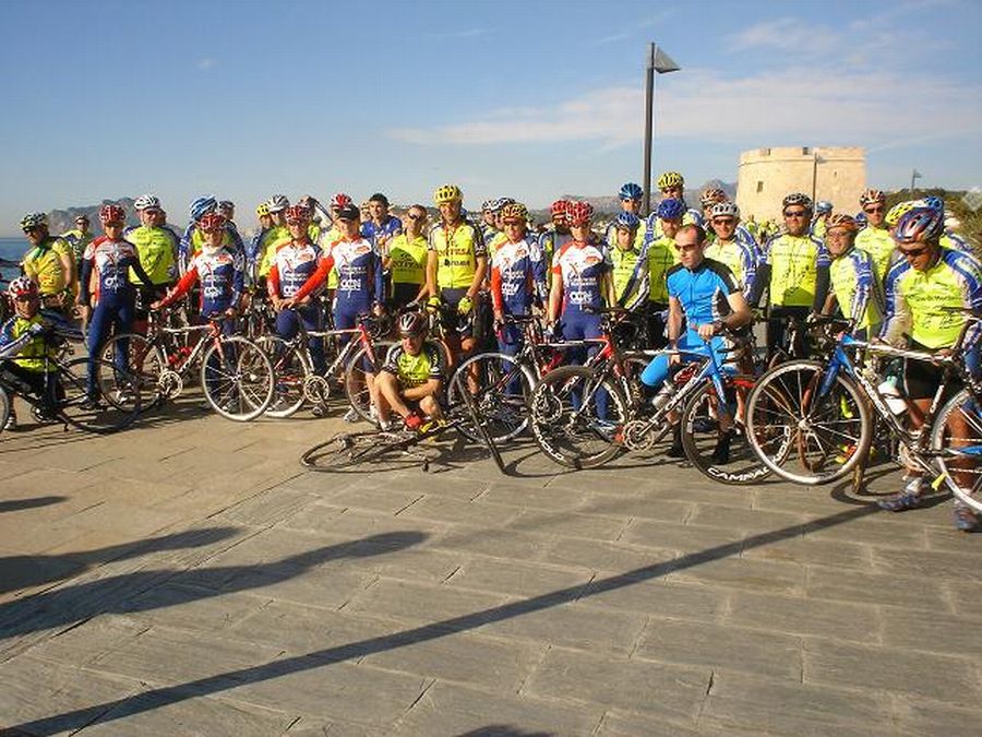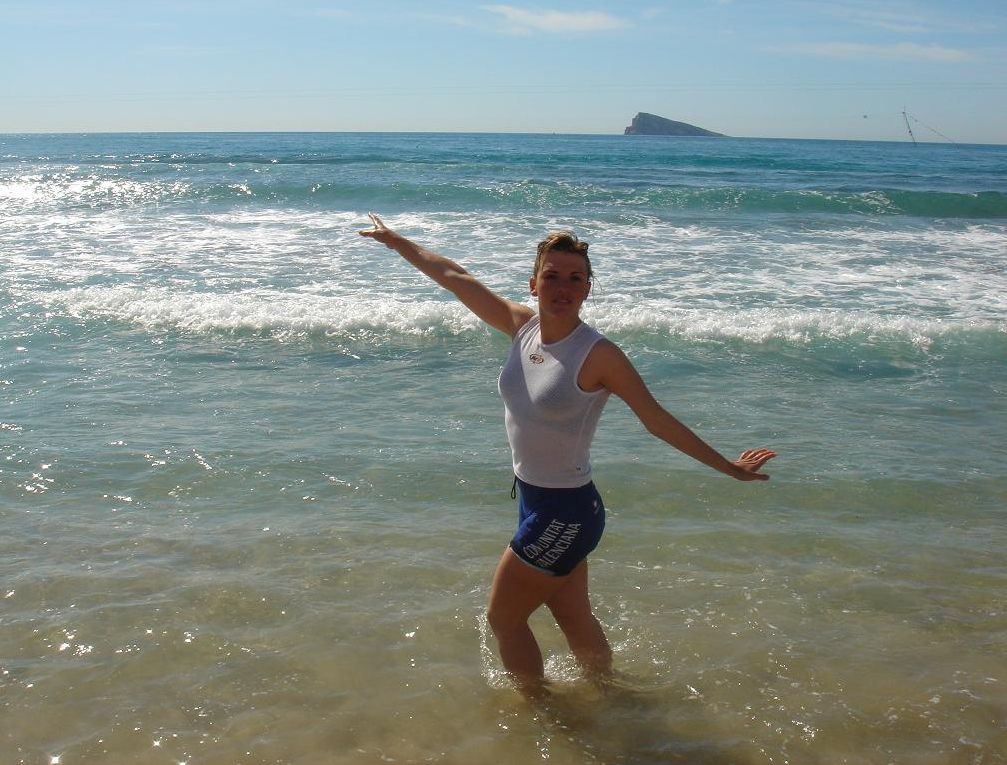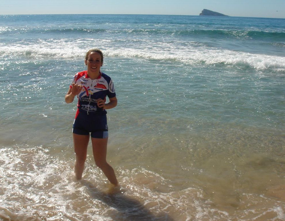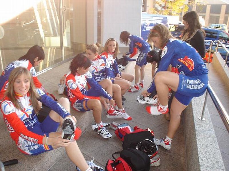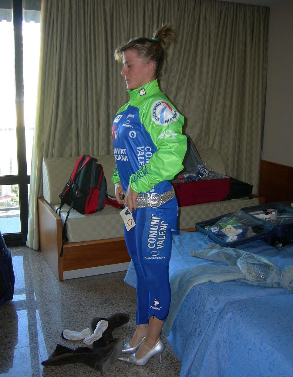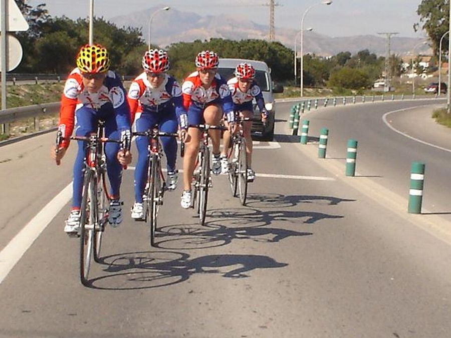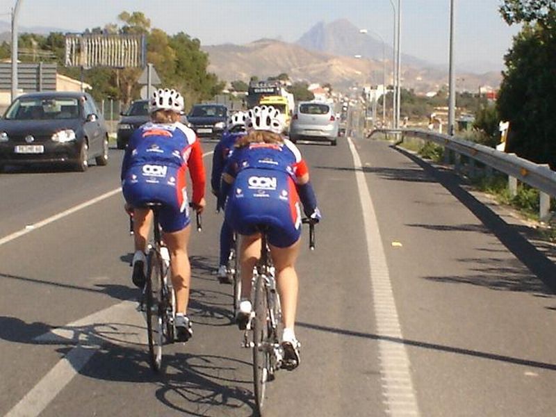 ![]() Ana Sanchis saludando y Maria subiendo uno de los míticos puertos de la sierra alicantina. |
