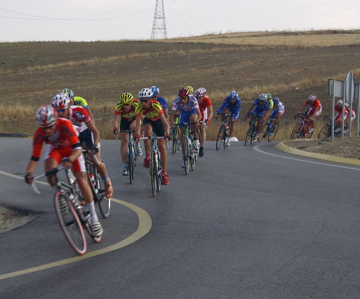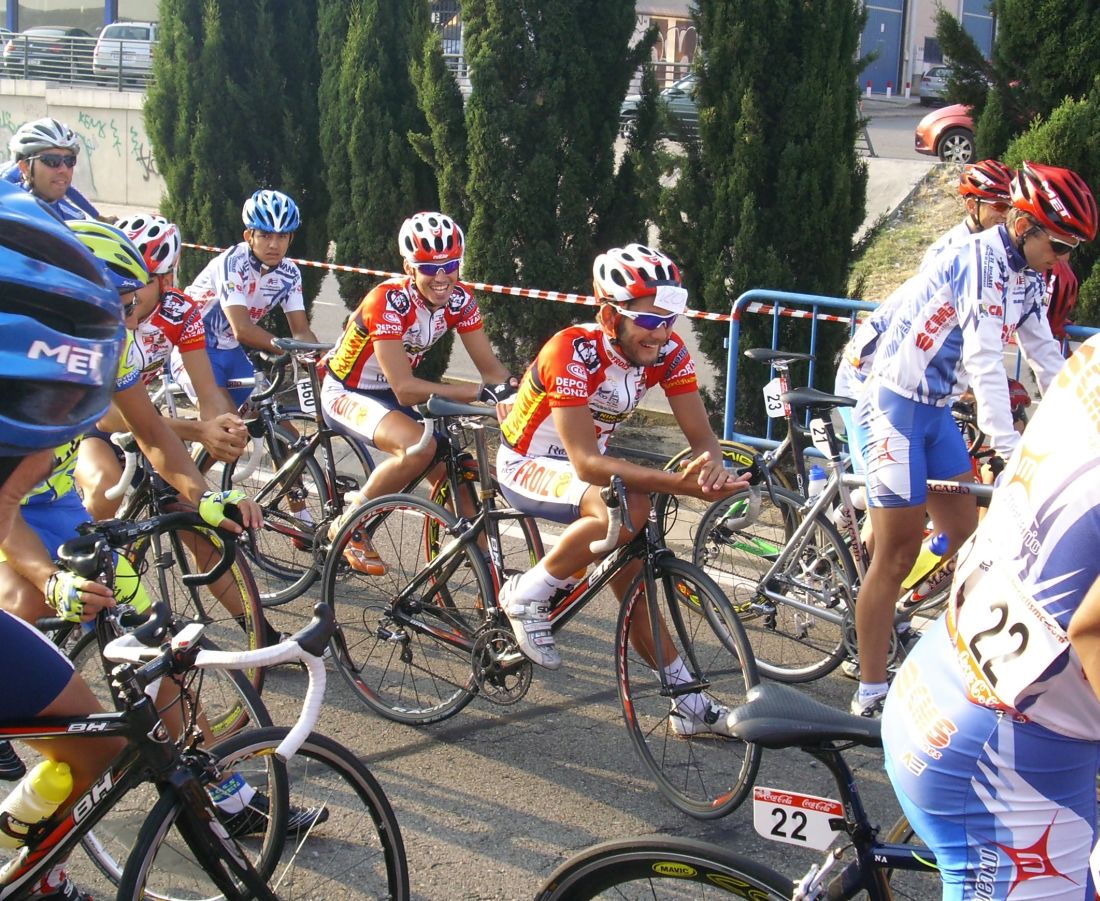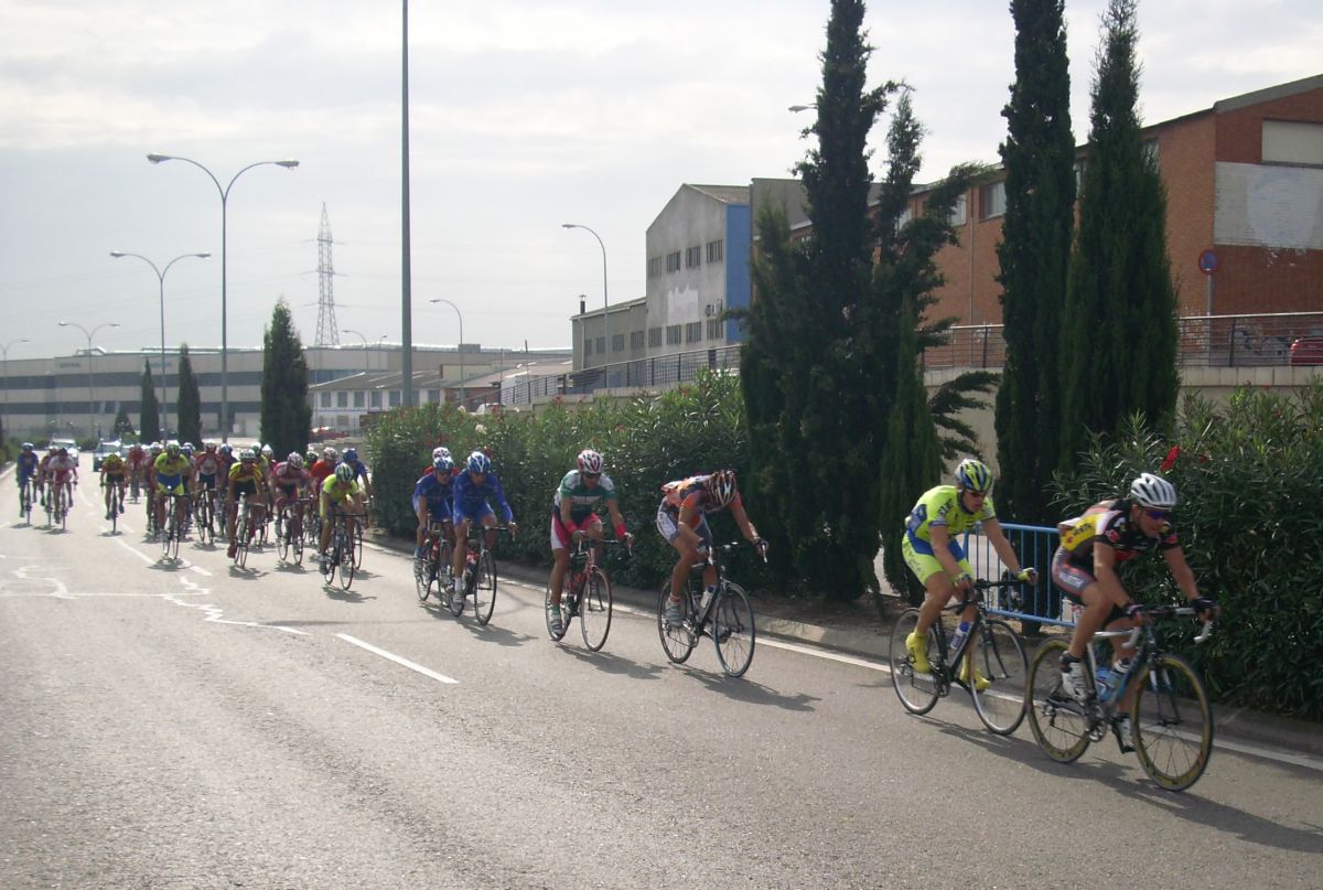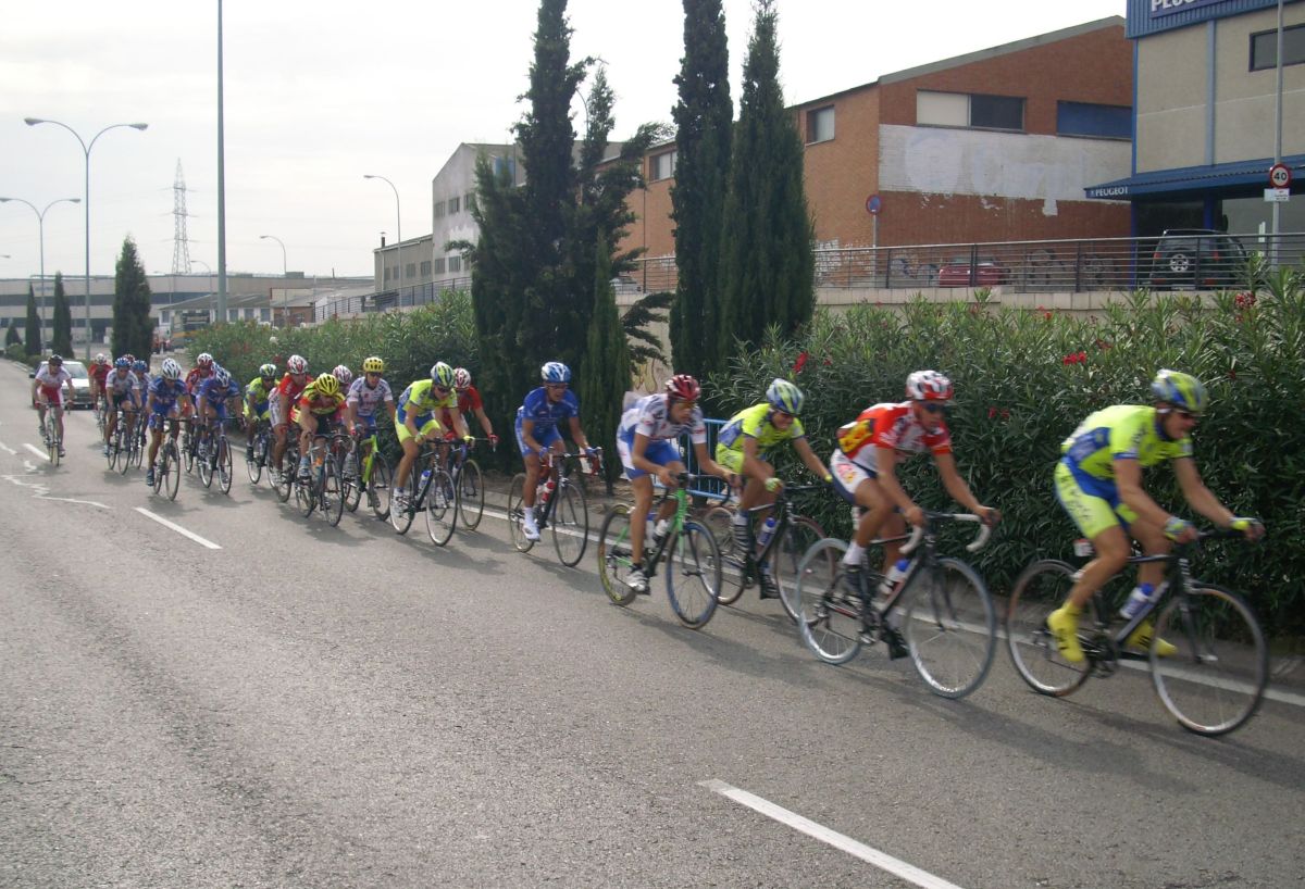 Maté se puso a tirar también para pillar el corte de alante, iba tirando el Mate fuerte, cortó el pelotón y enganchó el solo con el corte de alante, detrás hubo mas ataques y acabamos entrando bastante mas gente en el corte de delante, que se convertía ya en el nuevo pelotón. Esteban que había pinchado también estaba alante, pero por que cambió la rueda y acortó en una rotonda, pensando que al ser circuito podía acortar por pinchazo y que podía colar, pero esto no era una carrera de Pista precisamente y el circuito tenía repechos muy duros.