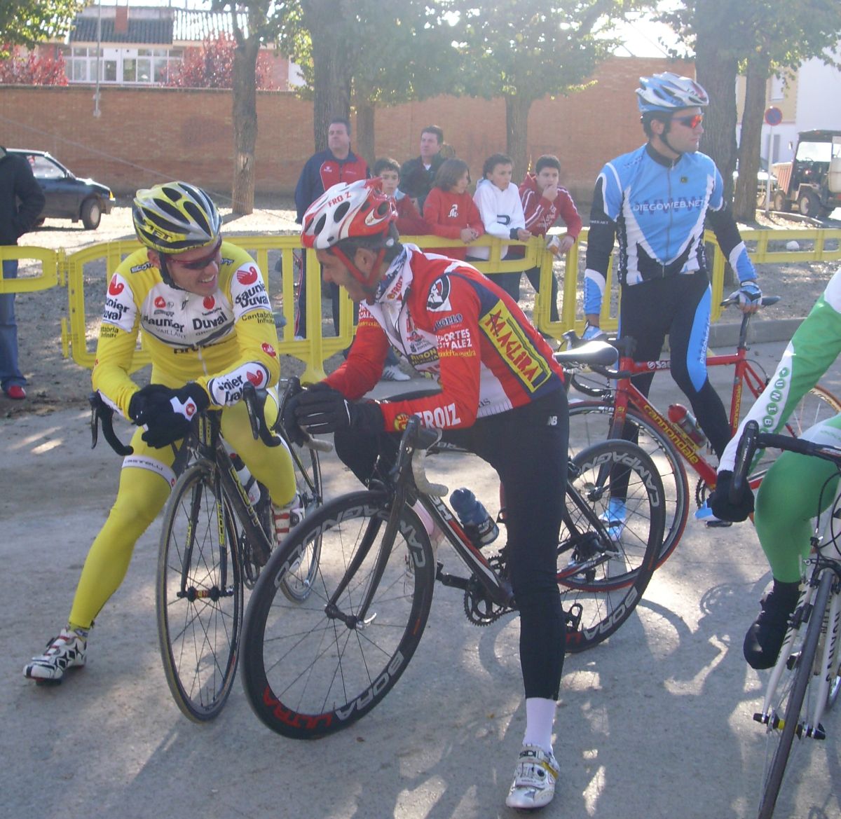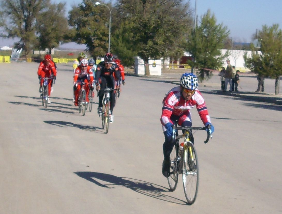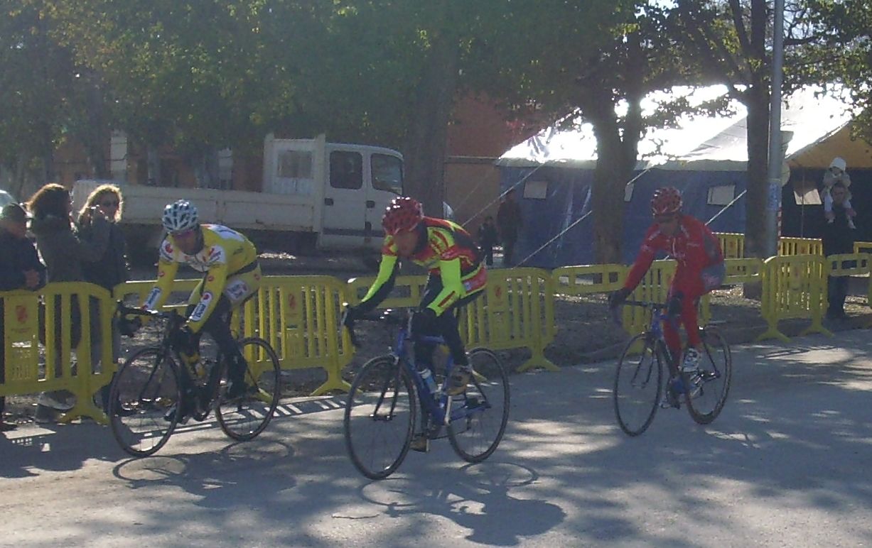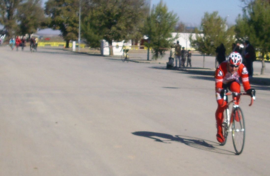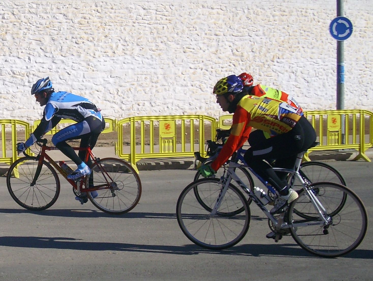 Iban tirando los dos Andalucía Cajasur y de verlo se me metió el chip que tendría que ponerme a tirar con ellos pero yo iba con la equipación Diegoweb.net asi que nada de nada, a rueda. Los Andalucía neutralizaron la fuga intermedia, que era bastante numerosa y solo queradon alante 4 corredores, que eran los que iban sacando los puntos de la puntuación.