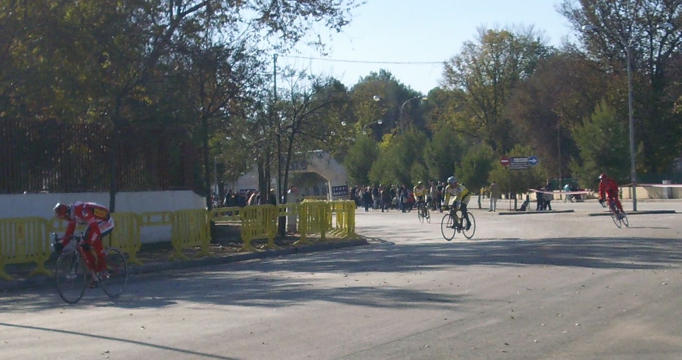 El circuito consistía en una pequeña vuelta de 1 km en falso llano, tenía su zona descendente y su zona ascendente, con sus correspondientes curvas seguidas de fuertes látigos, ya en la primera vuelta hicimos la subida a mas de 40 por hora, pero se fue poniendo mas caxonda la cosa y lo subimos engatillaos a mas de 50 neutralizando la primera escapada de Oscar Sevilla, luego se hizo otro corte donde se metió el Manu de Soctec, pero que fue rápidamente pillado, no se iba nadie..